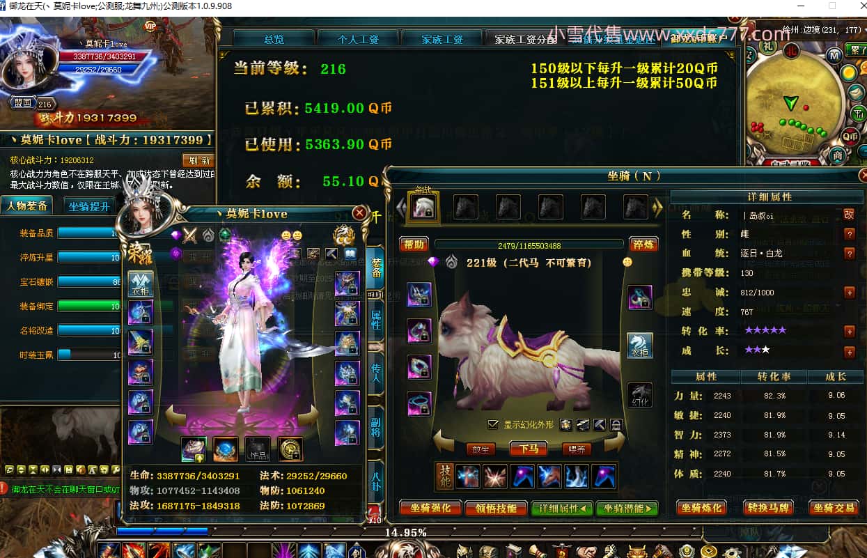 编号T19588 往事随风梦似烟 龙腾问鼎 扬州 198级 人物12X点星号 号内Q币933个 人物高淬357个 坐骑中淬60个 坐骑高淬2个