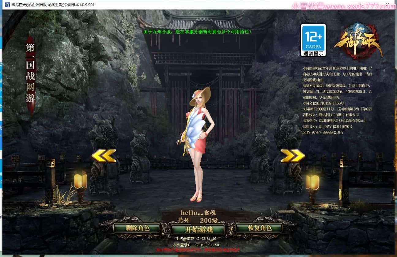 区服类型:怀旧区 九州龙虎