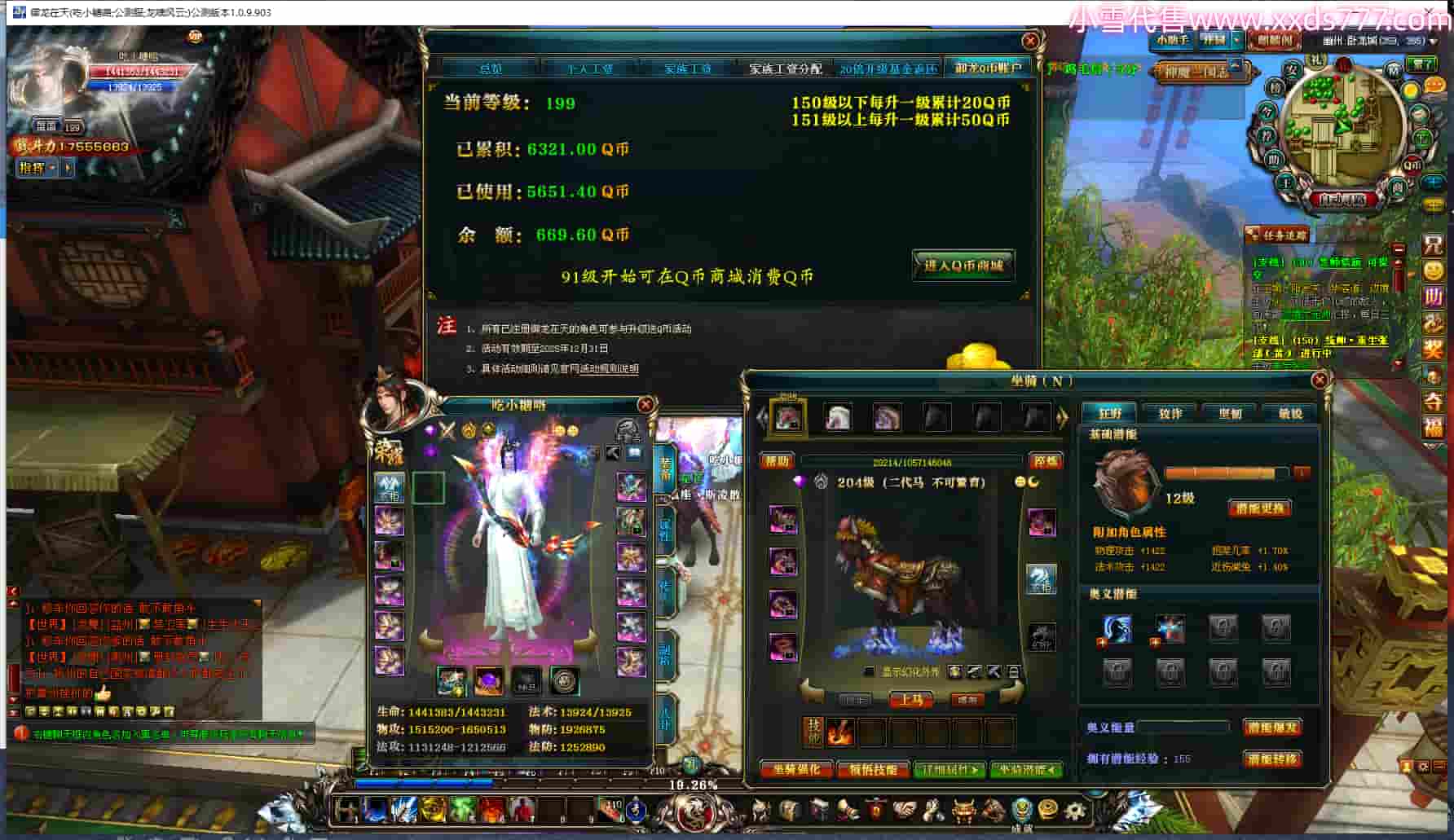 编号X23349 吃小糖咯 龙啸风云 幽州 199级 人物12X点星号 马9X 号内Q币669个 人物高淬262个 坐骑中淬99个
