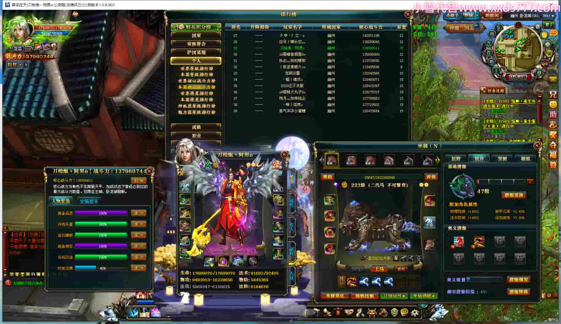 编号X23325 天黑请闭眼oy 龙啸风云 幽州 世界排名3名 41732W战力 人物混沌极品橙18X 传人黄金普通橙18X(9件混沌) 副将黄金普通橙12X 马混沌极品橙14X(双潜能55级47级) 史诗紫17披风 人物星魂16级 传人星魂16级 副将星魂6级 马星魂16级 人物铭刻18级 人物点亮18星 马铭刻15级 点亮14星 人物紫龙印 马绿龙印 六等单双属性神圣完美石头 绿紫孔 已开启永久18星套