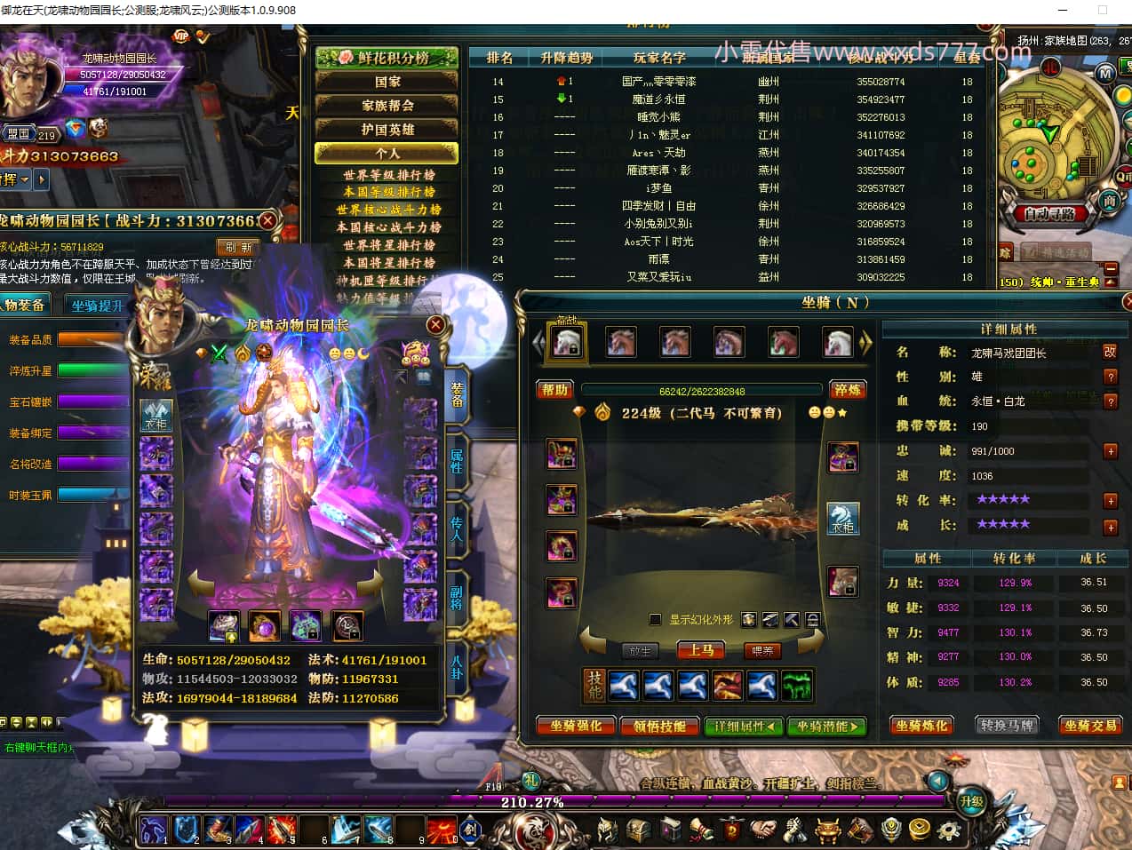 编号X22747 龙啸动物园园长 龙啸风云 扬州 世界排名27名 30579W战力 人物黄金加强橙15X(10件混沌) 传人黄金史诗紫15X 副将普通橙15X 马加强橙13X(双潜能53级52级) 史诗紫16披风 人物星魂16级 传人星魂16级 副将星魂14级 马星魂16级 人物铭刻5件18级其余15级 人物点亮4件18星其余16星 马铭刻15级 点亮14星 人物紫龙印 马绿龙印 六等单双属性神圣完美无瑕石头 绿孔 已开启永久18星套