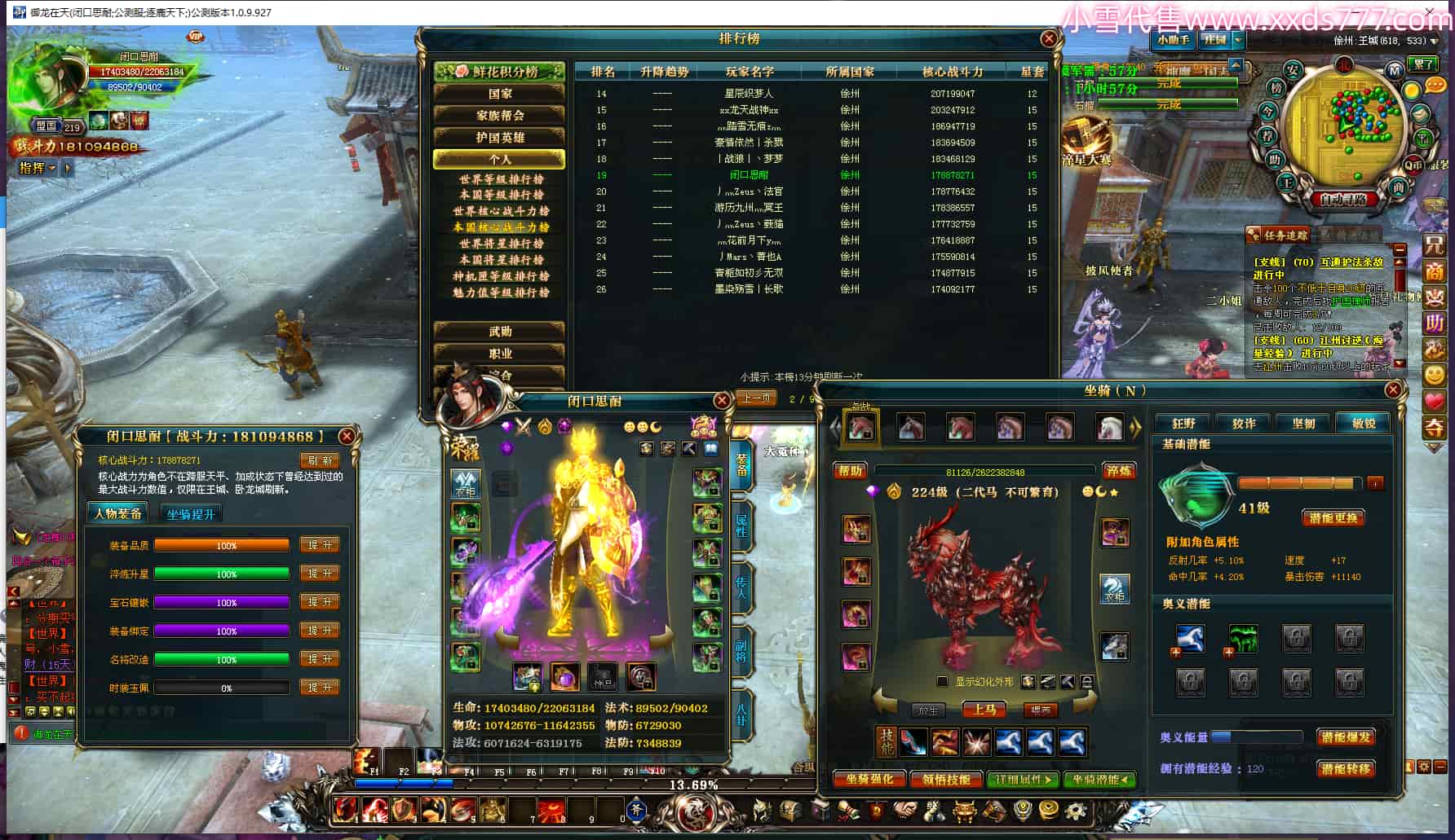 编号W24941 丶百战丨三万y 龙舞九州 荆州 世界排名65名 27351W战力 人物黄金极品橙15X(2件18X9件混沌) 传人史诗紫15X 副将精良紫12X 马精良橙12X 极品紫16披风 人物星魂16级 传人星魂15级 副将星魂6级 马星魂16级 人物铭刻1件18级1件17级1件16级其余15级 点亮16星 马铭刻2件14级其余13级 马点亮12星 人物绿龙印 马绿龙印 六等单双属性神圣完美无暇石头 黄绿孔 已开启永久18星套