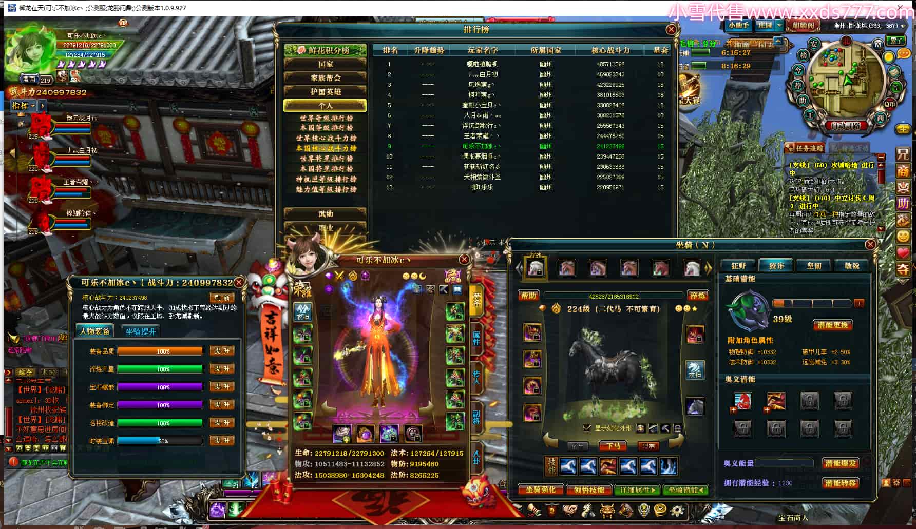 编号X24907 炫迈超级无敌棒 龙啸风云 豫州 200级 人物12X点星号 号内Q币487个 人物高淬50个 坐骑中淬4个