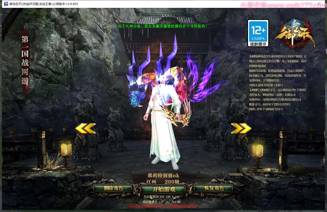 编号L22188 沉浮的77 龙战王者 幽州 本国排名60名 4349W战力 人物黄金极品橙12X(5件15X4件混沌) 马加强橙10X 人物绿龙印(3件紫龙印) 马绿龙印 六等单双属性石头 已开启永久15星套 可以转移百分百安全