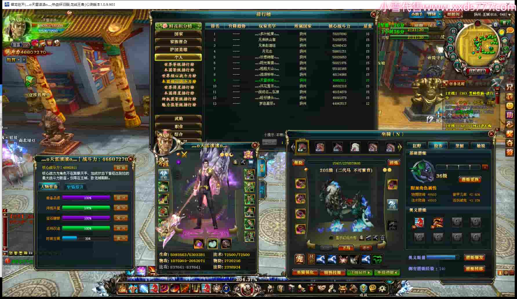 编号L19269 心灵捕梦手 龙战王者 扬州 本国排名10名 4468W战力 人物黄金加强橙12X(10件15X6件混沌) 马黄金普通橙12X 人物绿龙印 马黄龙印 六等单双属性石头 已开完永久15星套