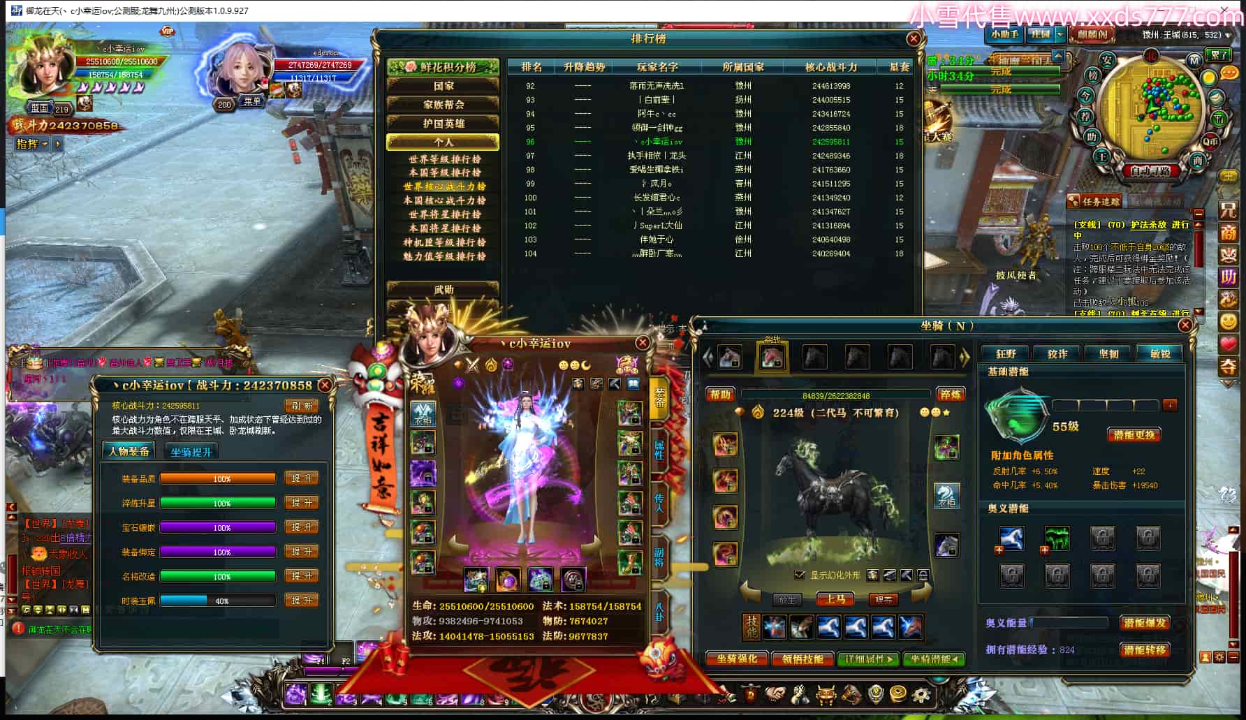 编号X24907 炫迈超级无敌棒 龙啸风云 豫州 200级 人物12X点星号 号内Q币487个 人物高淬50个 坐骑中淬4个