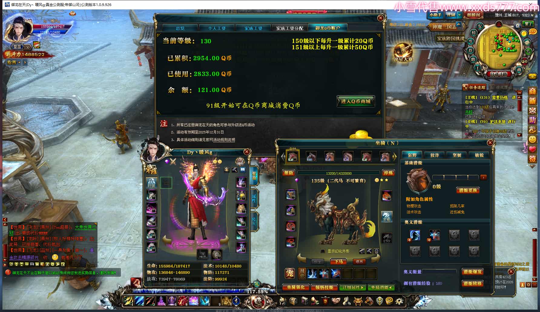 编号D24934 Dy丶暖风g 帝御山河 豫州 130级 人物加强紫12X 马加强紫8X 人物蓝龙印(2件黄龙印) 号内Q币121个