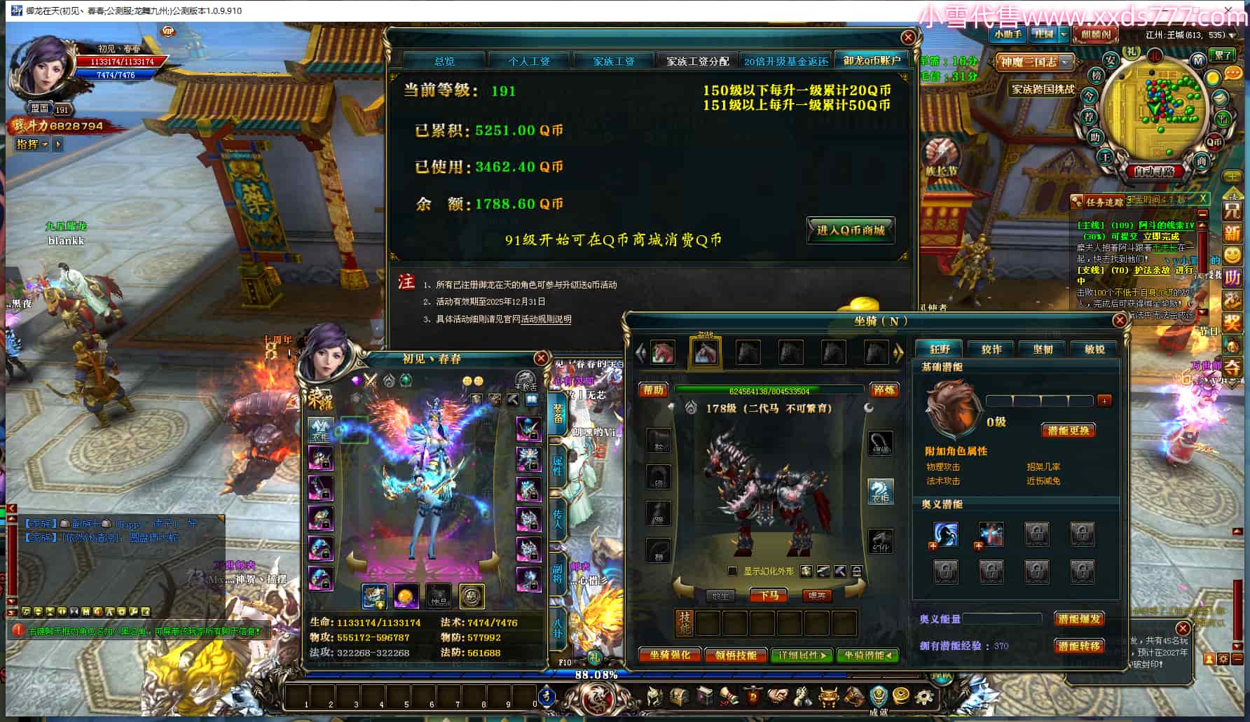 编号W23794 初见丶春春 龙舞九州 江州 191级 人物12X点星号 号内Q币1788个 人物高淬368个 坐骑中淬34个