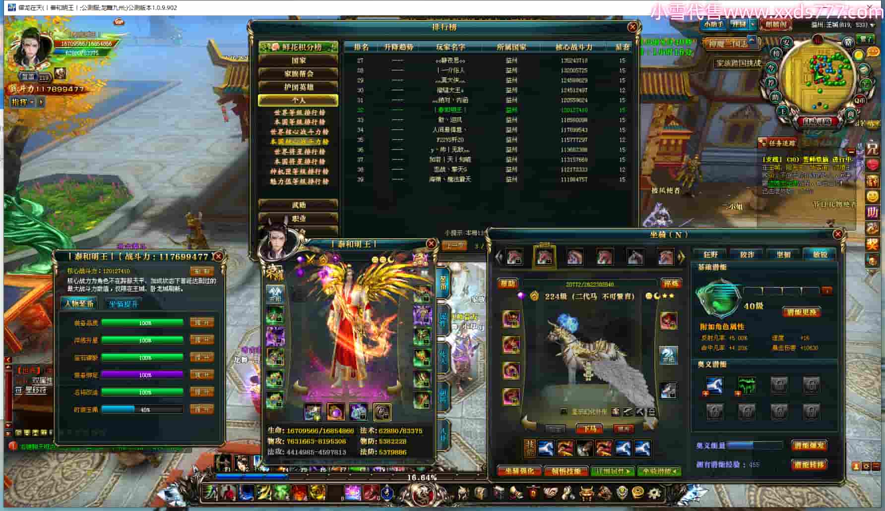 编号Q23283 传说中的飞晴i 群龙纵横 徐州 世界排名42名 4838W战力 人物黄金极品橙12X(1件17X3件15X6件混沌) 马黄金加强橙9X 人物紫龙印 马绿龙印 六等单双属性石头 已开完永久15星套 可以转移百分百安全