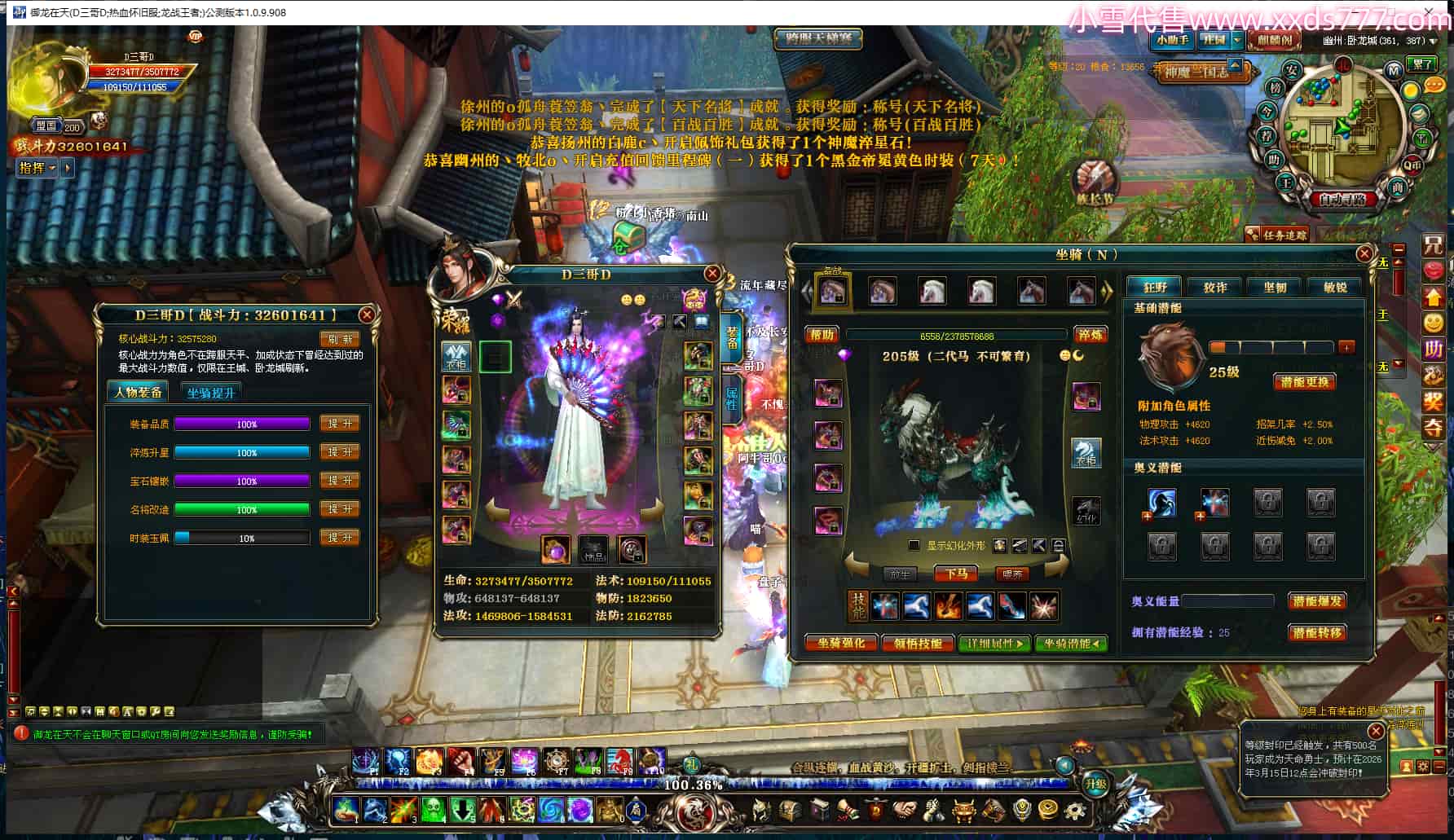 编号J23686 传说中的狄仁杰 九州龙虎 扬州 世界排名82名 3292W战力 人物黄金史诗紫12X 马史诗紫9X 人物紫龙印 马绿龙印 六等单双属性石头 已开完永久15星套 送俩300+高翠点星号 可以转移百分百安全