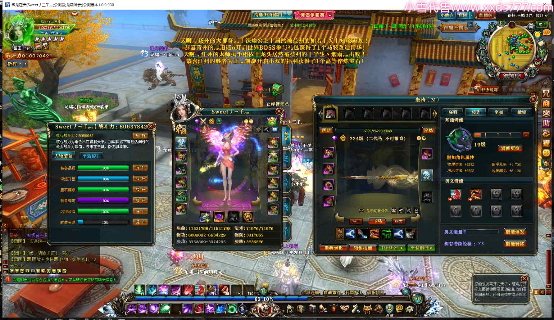 编号W24839 夜夜夜夜隆 龙舞九州 徐州 200级 人物12X点星号 号内Q币190个 坐骑中淬49个