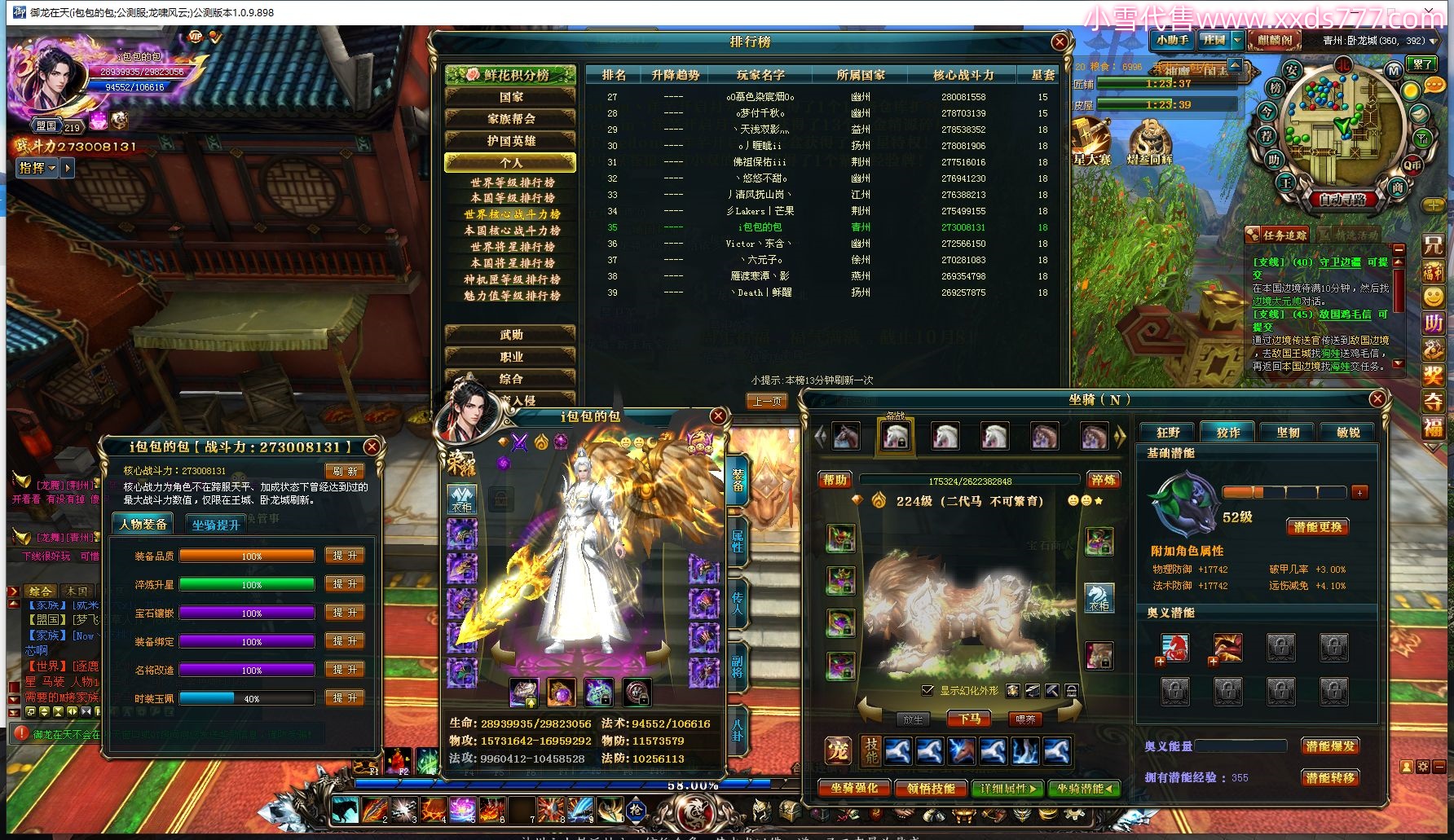 编号Q22264 宸宸无敌最俊朗 群龙纵横 徐州 本国排名74名 2866W战力 人物黄金普通橙12X(5件混沌) 马普通橙9X 人物绿龙印 马黄龙印 六等单双属性石头