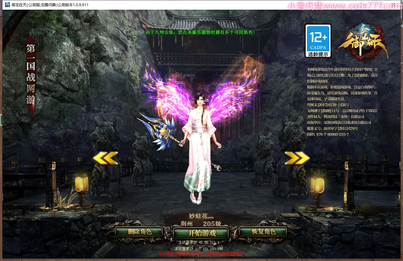 编号W18579 雪灬丶儿 龙舞九州 幽州 193级 人物12X点星号 号内Q币130个 人物高淬230个 坐骑中淬49个