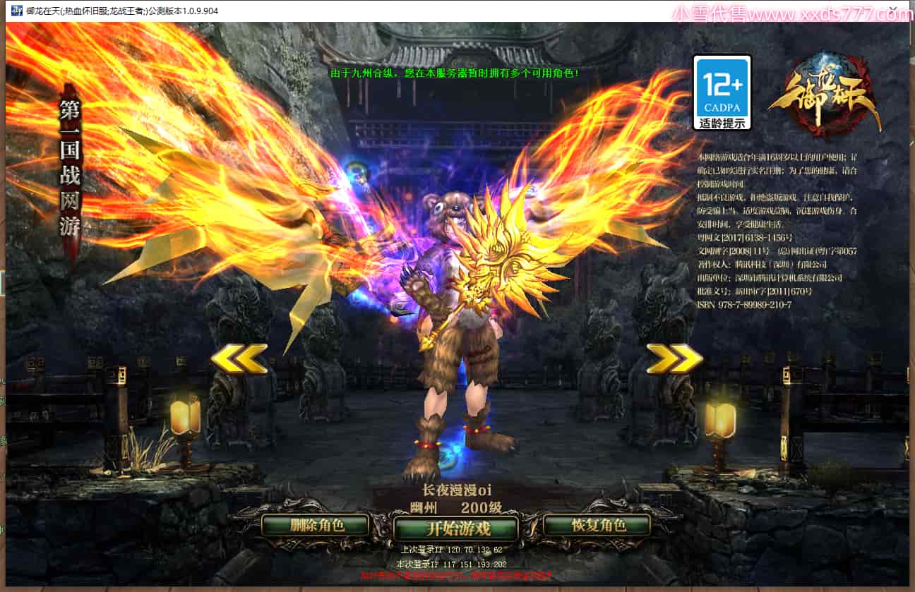 区服类型:怀旧区 九州龙虎