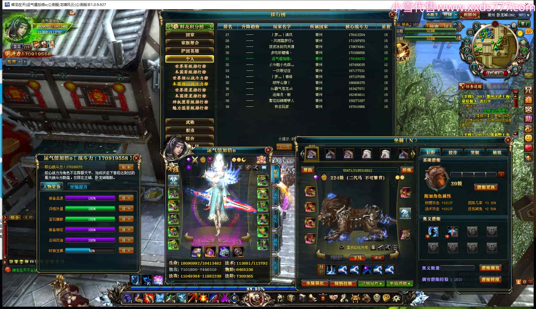 编号X24978 运气值加倍o 龙啸风云 青州 本国排名31名 17091W战力 人物黄金普通橙15X(7件混沌) 传人极品紫15X 副将极品紫12X 马史诗紫12X 精良紫14披风 人物星魂16级 传人星魂12级 副将星魂6级 马星魂12级 人物铭刻15级 点亮5件16星其余14星 马铭刻15级 点亮12星 人物绿龙印 马黄龙印 五六等单双属性神圣完美无暇石头 黄蓝孔 已开2次永久15星套