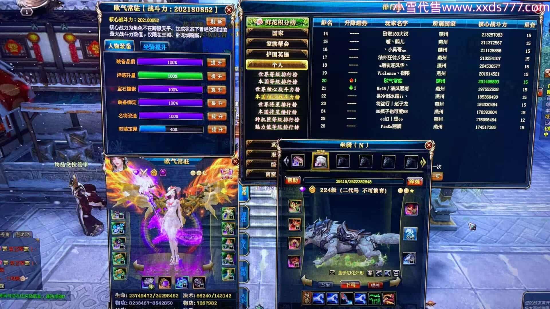 编号Q23894 o鲁班七号丶 群龙纵横 徐州 世界排名12名 7530W战力 人物黄金极品橙15X(8件18X9件混沌) 马黄金精良橙12X 人物紫龙印 马绿龙印 六等单双属性石头 已开完永久15星套 可以转移百分百安全