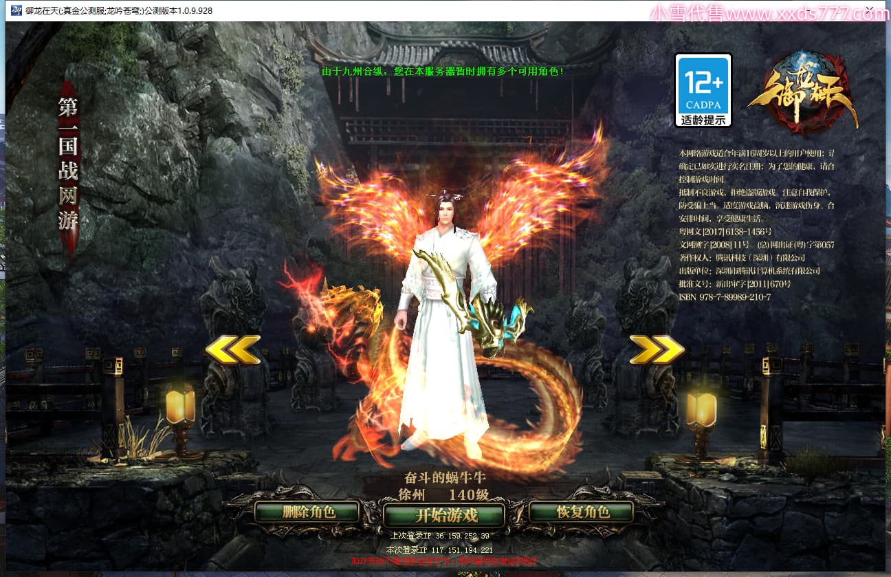 区服类型:真金公测服 龙吟苍穹