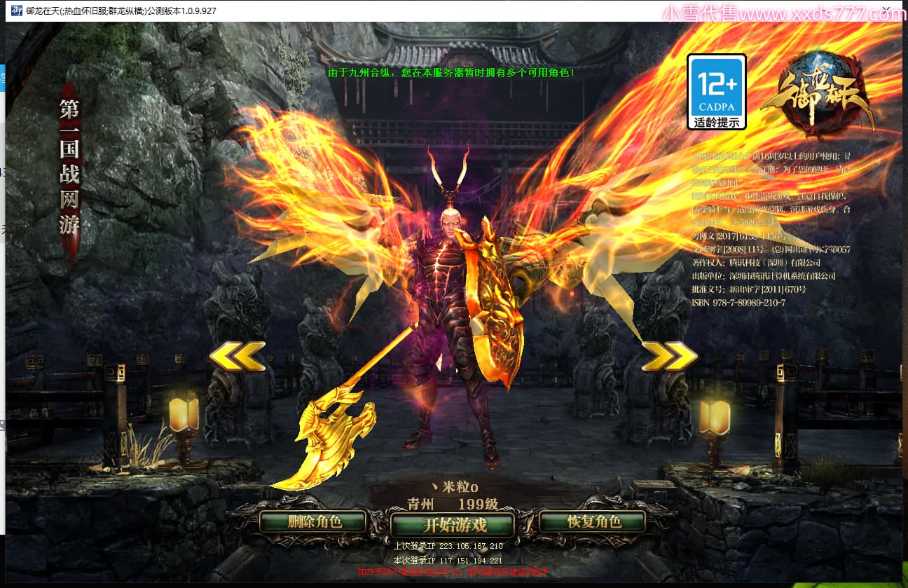 区服类型:怀旧区 九州龙虎