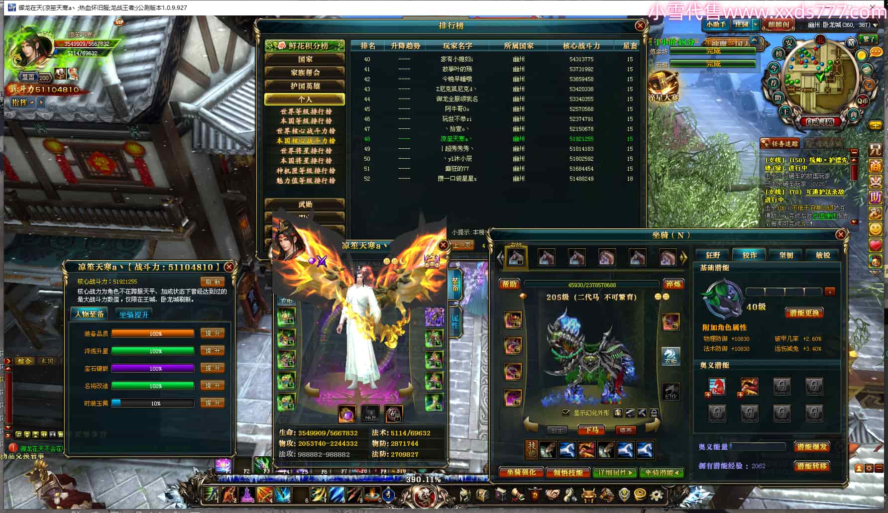 编号Q24985 传说中的啊毛 群龙纵横 徐州 本国排名48名 4321W战力 人物黄金史诗紫11X(2件15X4件混沌) 马史诗紫10X 人物紫龙印 马黄龙印 六等单双属性石头 已开完永久15星套