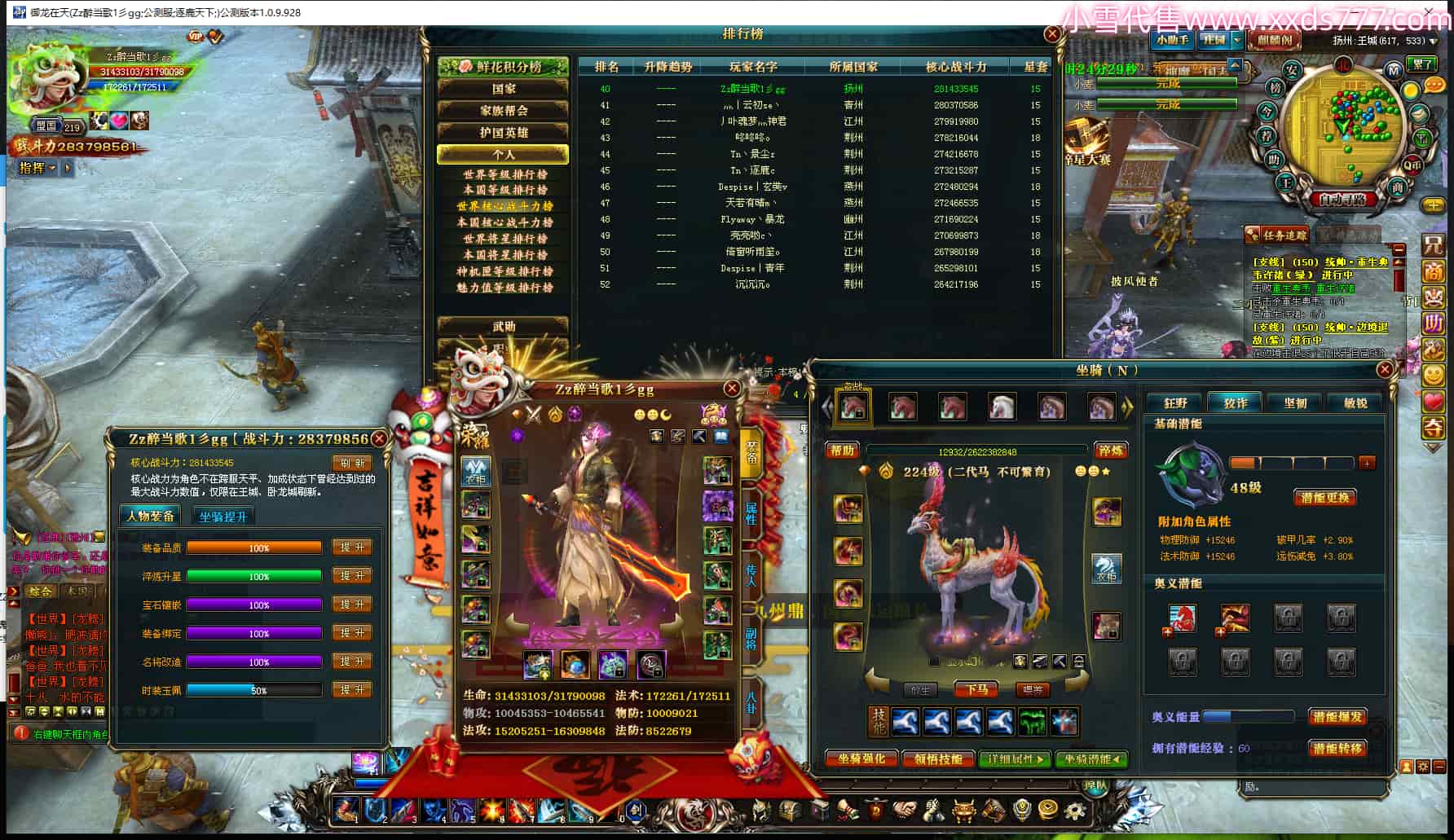 编号X25030 Super丶烟瘾 龙啸风云 徐州 本国排名29名 18220W战力 人物黄金史诗紫15X(7件混沌) 传人精良紫15X 副将极品紫12X 马史诗紫12X 极品紫15披风 人物星魂16级 传人星魂12级 副将星魂6级 马星魂12级 人物铭刻15级 人物点亮16星 马铭刻3件15级其余14级 点亮12星 人物绿龙印 马黄龙印 五六等单双属性神圣完美无暇石头 黄蓝孔 可以转移百分百安全