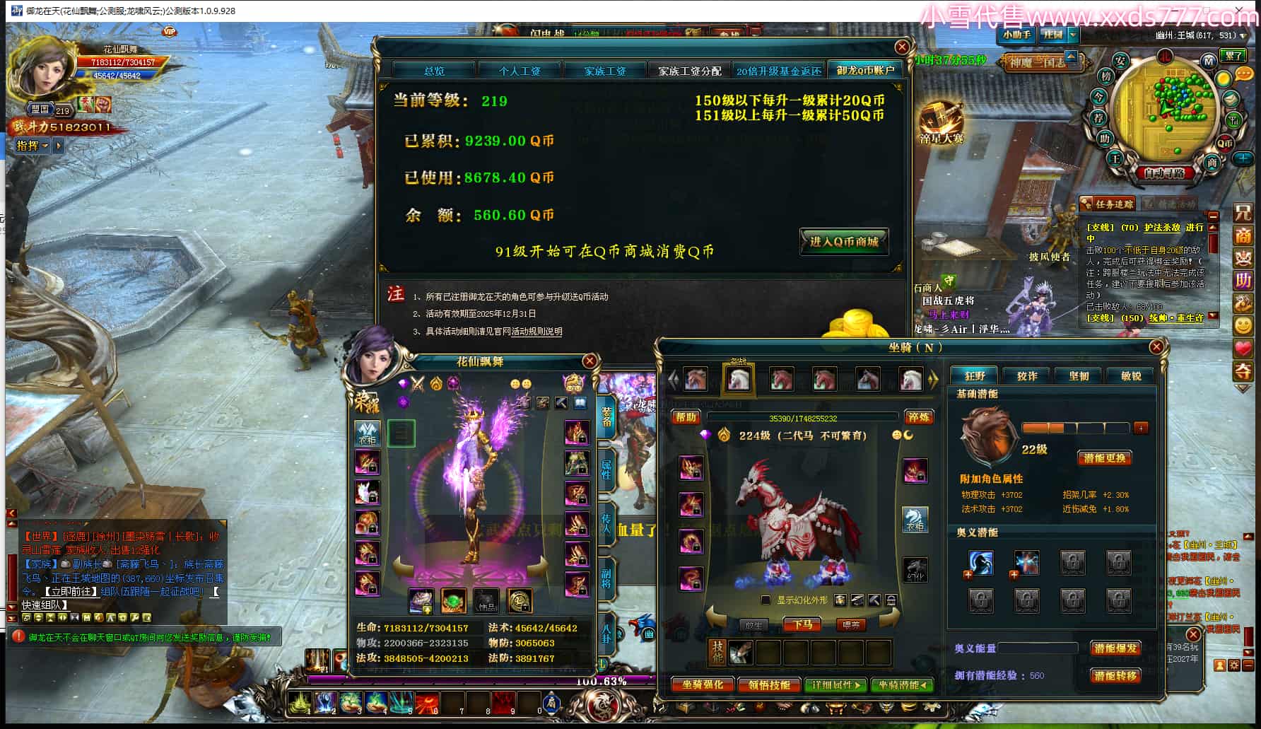 编号Z24965 验兵玖 逐鹿天下 燕州 200级 人物12X点星号 马6X 号内Q币2571个 人物高淬524个 坐骑中淬79个