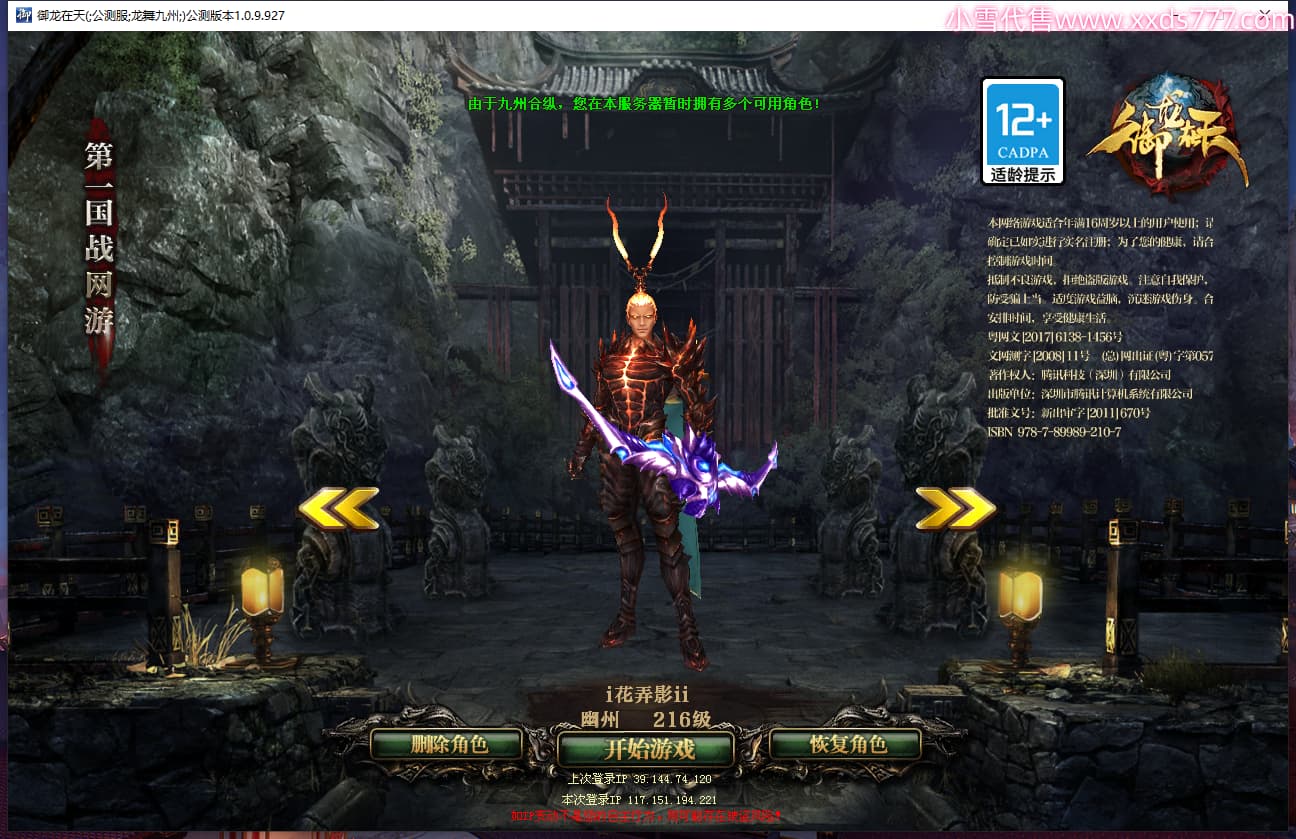 编号W24987 i花弄影ii 龙舞九州 幽州 216级 人物12X点星号 铭刻12级 点亮12星 传人12X 副将12X 马9X 号内Q币1405个 人物高淬510个 坐骑中淬11个 坐骑高淬15个