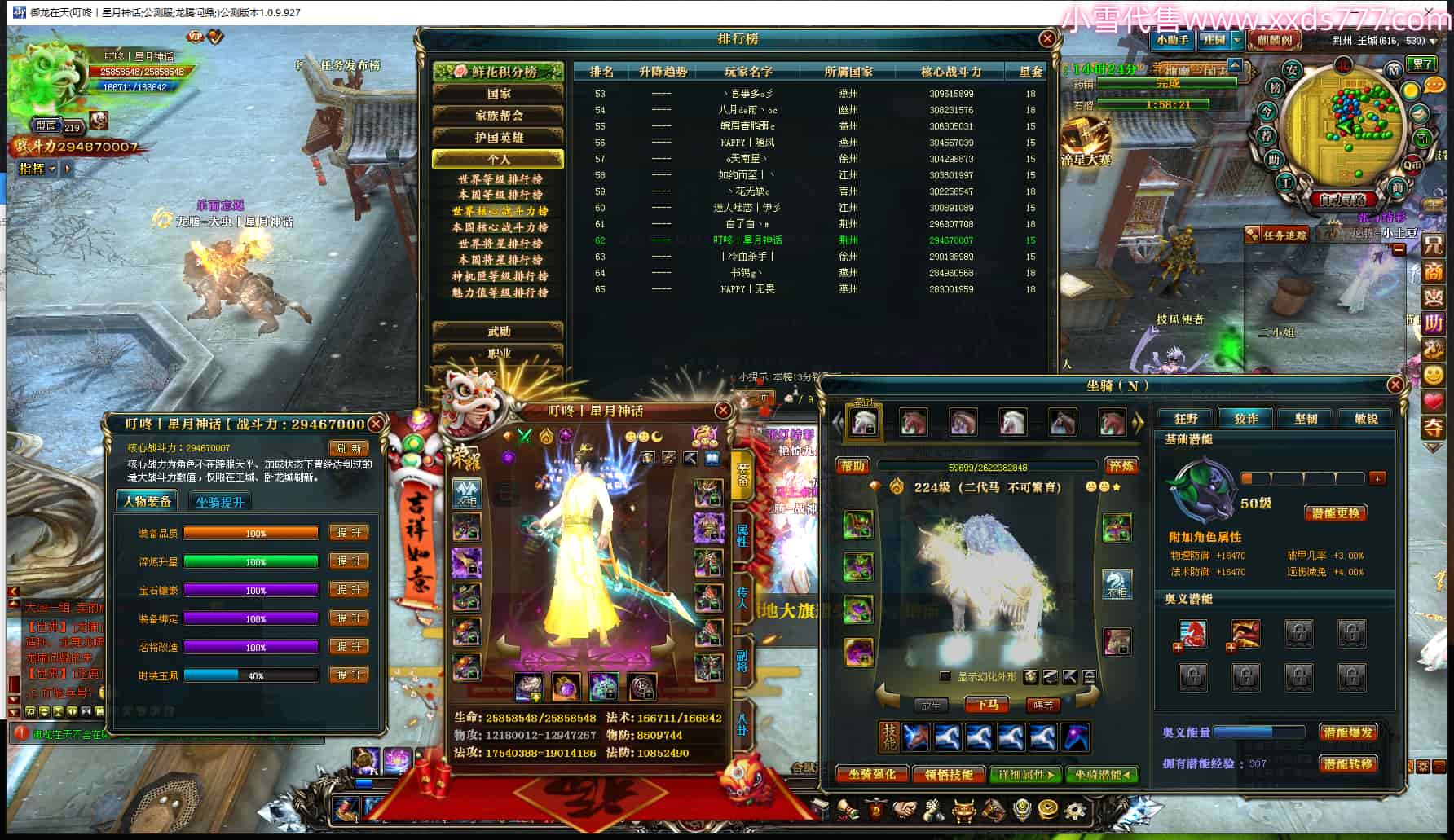 编号T25006 叮咚丨星月神话 龙腾问鼎 荆州 世界排名62名 29467W战力 人物黄金极品橙16X(1件18X9件混沌) 传人黄金加强橙15X 副将极品紫12X 马黄金极品橙13X(双潜能50级23级) 极品紫16披风 人物星魂16级 传人星魂16级 副将星魂6级 马星魂16级 人物铭刻7件16级其余15级 点亮16星 马铭刻13级 点亮14星 人物绿龙印(2件紫龙印) 马黄龙印(4件绿龙印) 六等单双属性完美无暇神圣石头 黄绿孔 已开完永久15星套 可以转移百分百安全