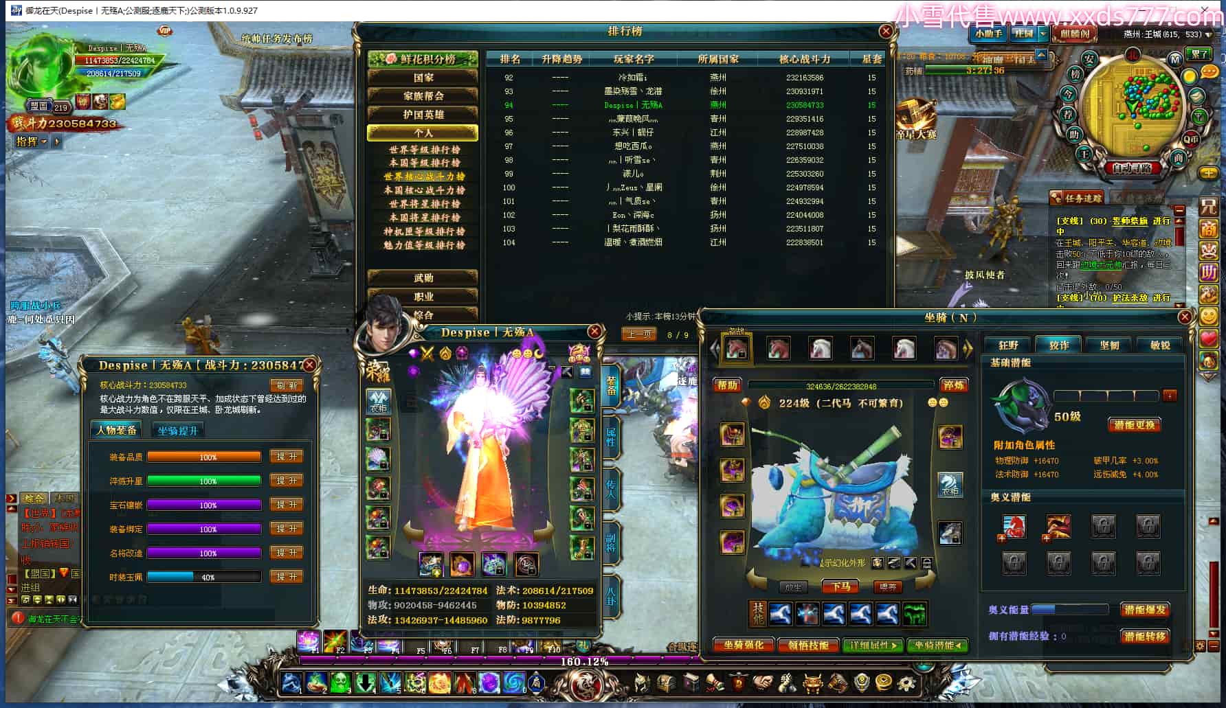 编号Z24965 验兵玖 逐鹿天下 燕州 200级 人物12X点星号 马6X 号内Q币2571个 人物高淬524个 坐骑中淬79个