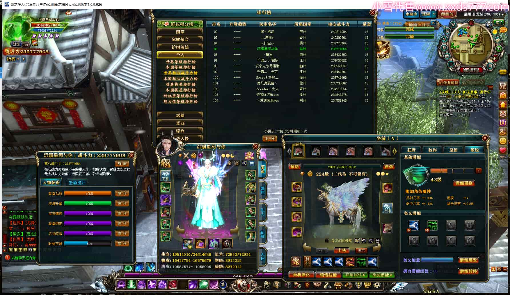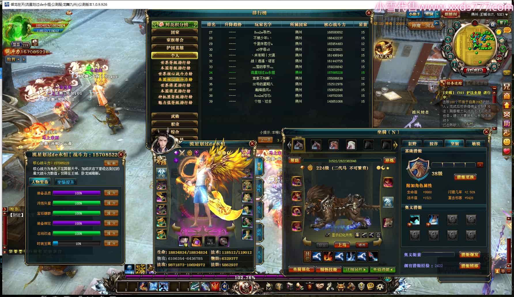 编号X24899 shy雪花c 龙啸风云 江州 世界排名30名 30648W战力 人物黄金极品橙15X(2件18X9件混沌) 传人黄金普通橙15X 副将普通橙15X 马黄金极品橙14X(双潜能50级28级) 史诗紫16披风 人物星魂16级 传人星魂16级 副将星魂16级 马星魂16级 人物铭刻2件18级其余15级 点亮1件18星其余16星 马铭刻15级 点亮14星 人物绿龙印(6件紫龙印) 马绿龙印 六等单双属性神圣完美无暇石头 绿孔 已开启永久18星套