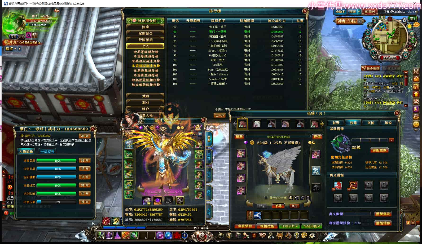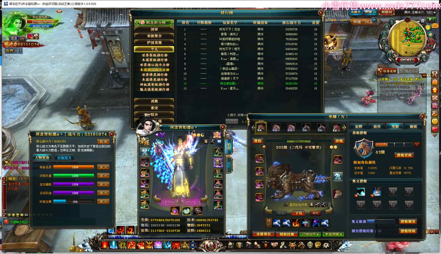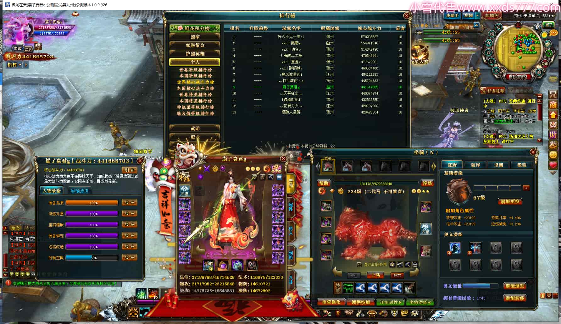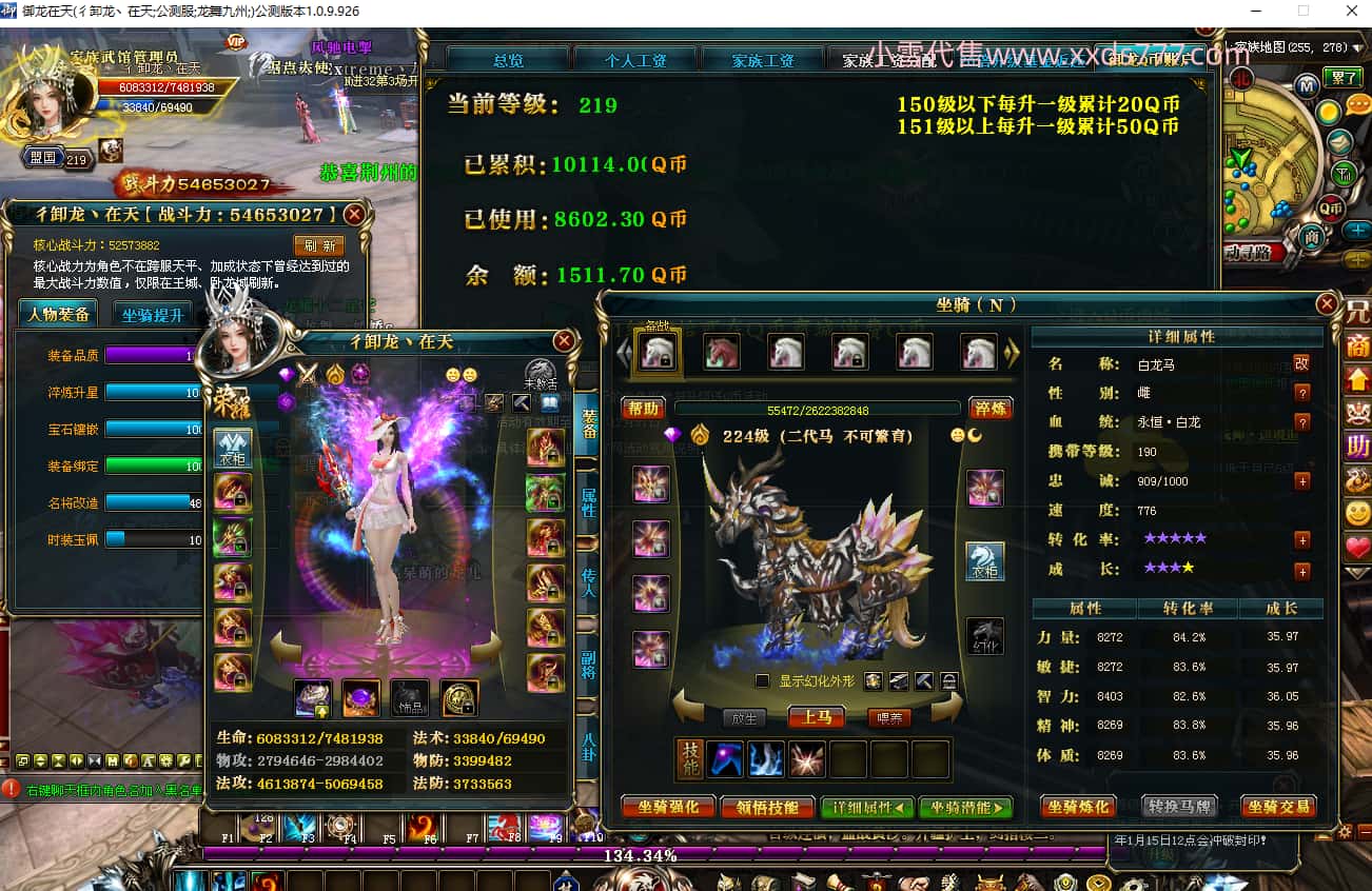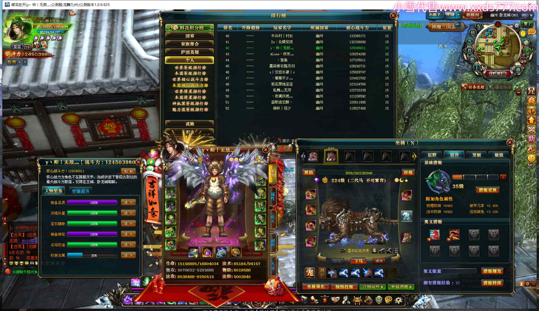 编号W24892 彳卸龙丶在天 龙舞九州 荆州等级219级 5465W战力 人物12X 传人12X 副将12X 马9X 人物铭刻12级 点亮1件14星剩下的12星 马铭刻3件10级2件9级 点亮10星 人物2件绿+9件黄龙印 马白龙印 六等单双属性神圣完美无瑕石头 人物高翠417个 马高翠105个 中萃255个