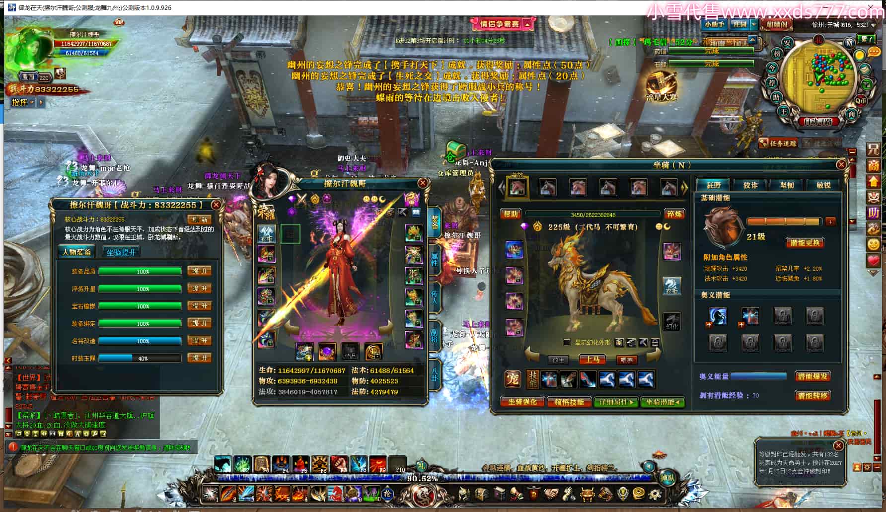 编号W24900 擦尔汗魏哥 龙舞九州 徐州 8332W战力 人物史诗紫15X(2件混沌) 传人精良紫12X 副将精良紫12X 马精良紫9X 普通紫12披风 人物星魂10级 传人星魂4级 马星魂5级 人物铭刻4件15级2件13级其余12级 点亮4件件14星其余12星 马铭刻12级 点亮10星 人物绿龙印 马白龙印(1件蓝龙印) 五六等单双属性神圣完美无暇石头 白孔