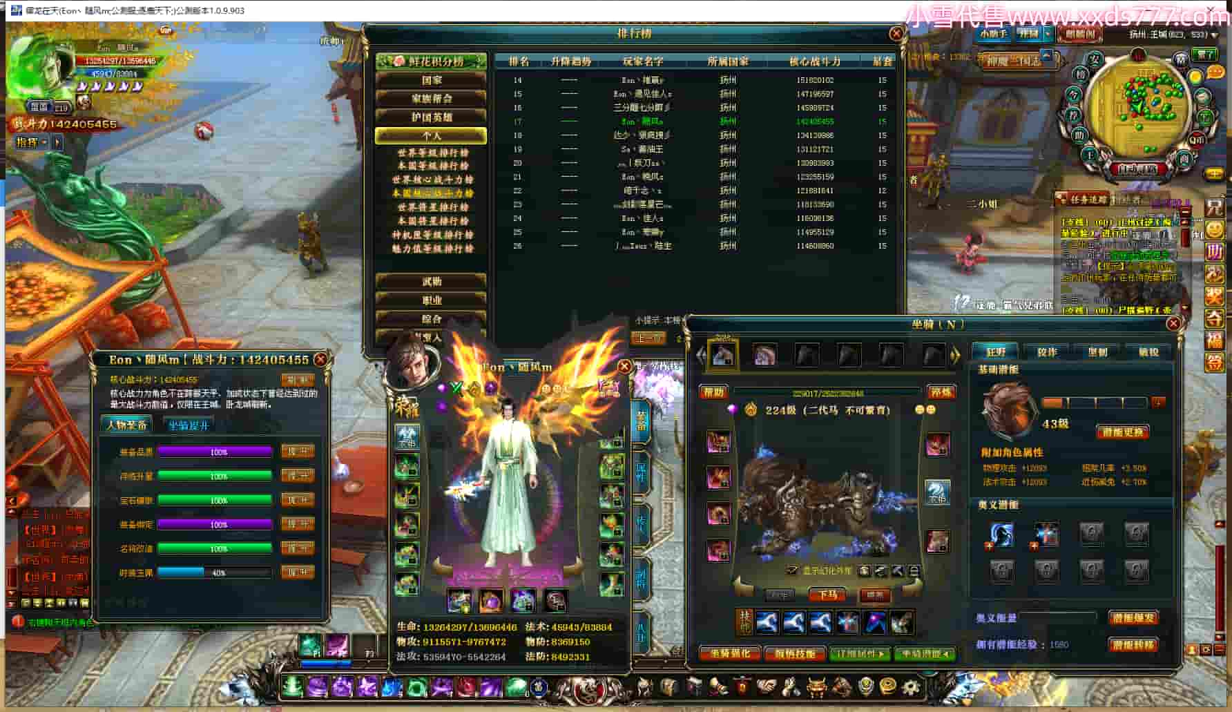 编号Z23364 Eon丶随风m 逐鹿天下 扬州 本国排名17名 14240W战力 人物黄金史诗紫15X(5件混沌) 传人精良紫15X 副将极品紫15X 马史诗紫12X 精良紫15披风 人物星魂16级 传人星魂11级 副将星魂6级 马星魂10级 人物铭刻15级 人物点亮16星 马铭刻1件13级其余12级 点亮12星 人物绿龙印 马黄龙印 六等单双属性神圣完美无暇石头 黄蓝孔 已开启1次永久15星套