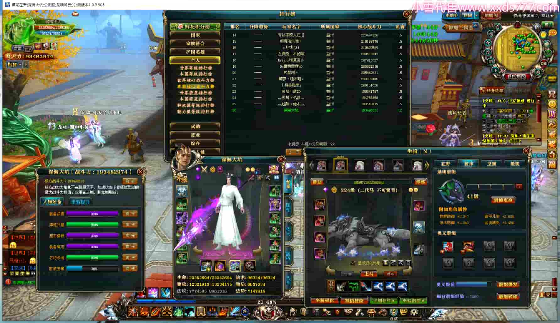 编号X23553 深海大坑 龙啸风云 益州 本国排名26名 19348W战力 人物黄金史诗紫14X(10件15X8件混沌) 传人精良紫14X(10件15X) 副将极品紫12X 马史诗紫12X 极品紫15披风 人物星魂16级 传人星魂16级 副将星魂10级 马星魂16级 人物铭刻15级 点亮16星 马铭刻15级 点亮12星 人物绿龙印(2件紫龙印) 马黄龙印 六等单双属性神圣完美无暇石头 黄孔