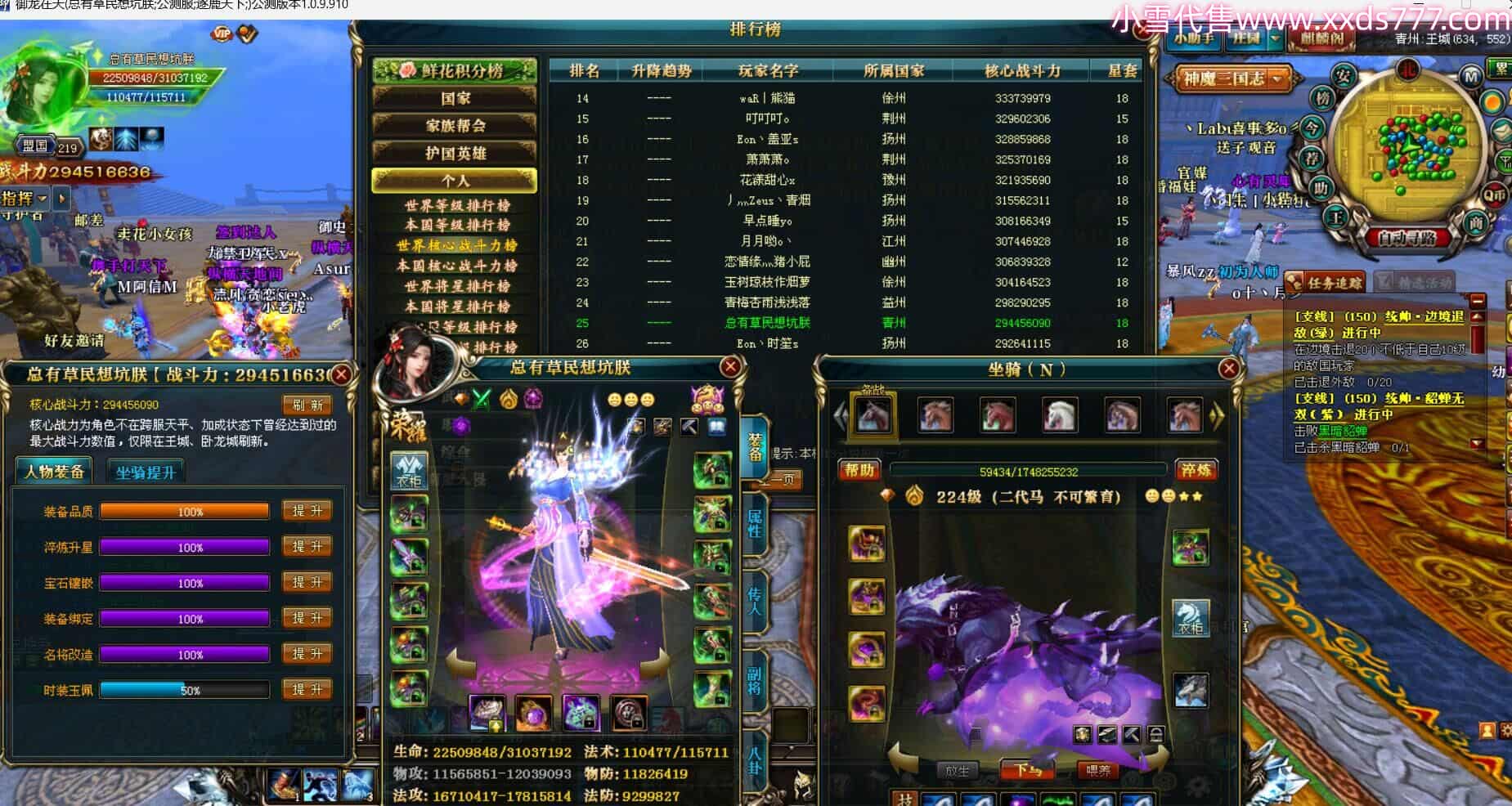 编号Z20153 灬丨武神se丶 逐鹿天下 豫州 世界排名10名 28939W战力 人物混沌极品橙18X 传人黄金精良橙18X(5件混沌) 副将黄金普通橙15X(7件18X) 马黄金极品橙14X(双潜能61级60级) 史诗紫17披风 人物星魂16级 传人星魂16级 副将星魂9级 马星魂16级 人物铭刻18级 人物点亮18星 马铭刻1件15级其余14级 点亮14星 人紫龙印 马绿龙印 六等单双属性神圣完美无暇石头 紫孔 已开4次永久18星套