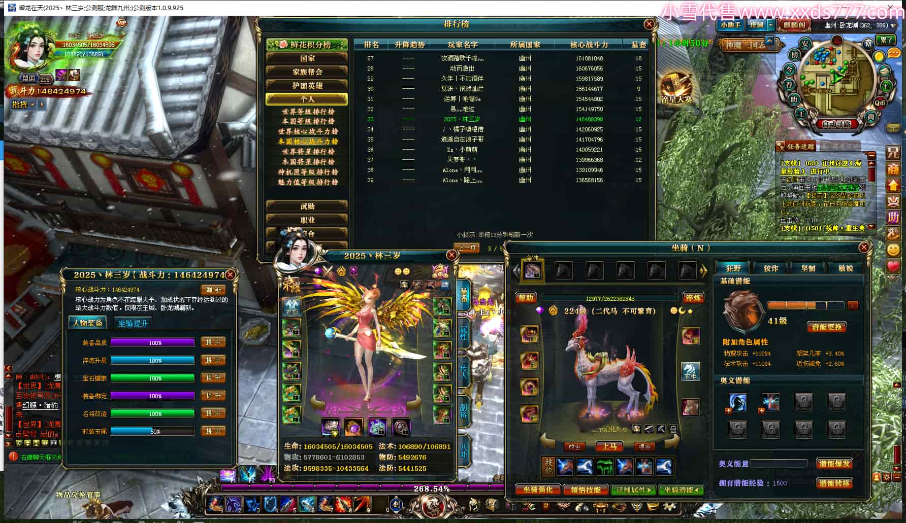 编号W24866 枫叶彡九天揽月 龙舞九州 徐州 世界排名42名 31254W战力 人物黄金精良橙18X(9件混沌) 传人黄金极品紫18X 副将加强橙18X 马黄金加强橙14X(双潜能50级36级) 极品紫16披风 人物星魂16级 传人星魂13级 副将星魂6级 马星魂16级 人物铭刻18级 点亮18星 马铭刻2件17级1件16级其余15级 点亮14星 人物紫龙印 马黄龙印 六等单双属性神圣完美无暇石头 绿孔 已开启永久18星套
