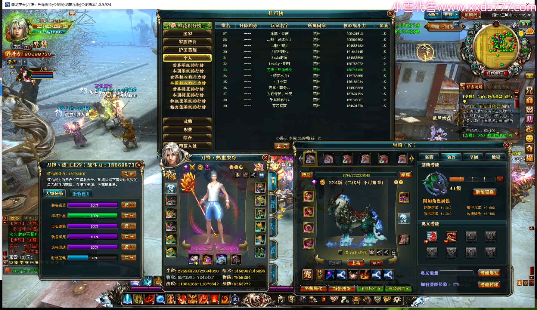 编号Y24869 浅沫忆璃夏o丶 龙耀狂飙 幽州 本国排名32名 2231W战力 人物黄金普通橙12X(4件15X5件混沌) 马史诗紫11X 人物绿龙印 马黄龙印 六等单双属性石头 可以转移百分百安全