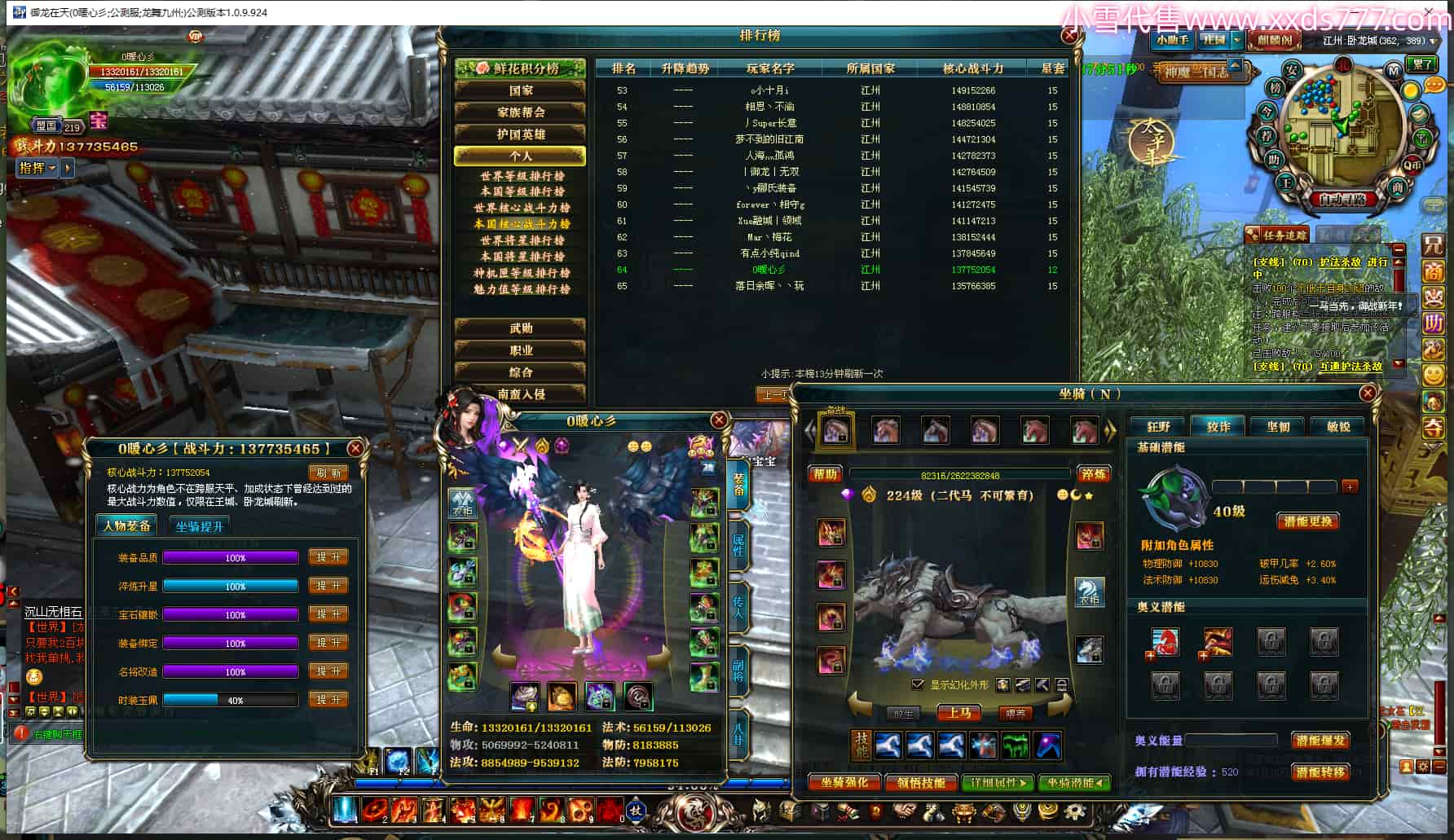 编号W24826 何必想的太多 龙舞九州 徐州 200级 人物12X点星号 号内Q币1099个 坐骑中淬48个