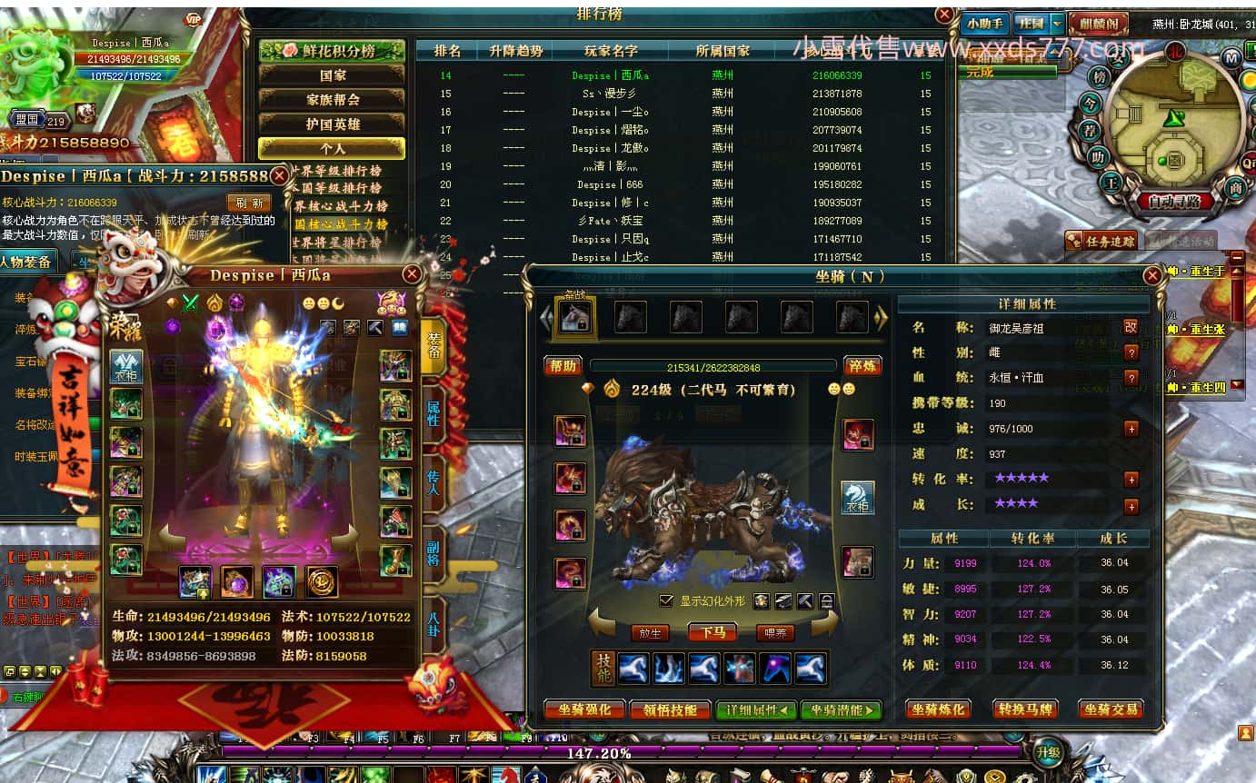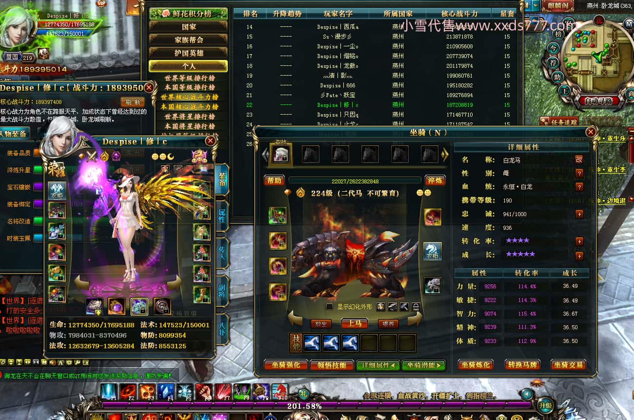 编号Z24800 Despise丨修丨c 逐鹿天下 燕子 本国排名21名 18939W战力 人物黄金普通橙15X(5件混沌) 传人精良紫15X 副将精良紫12X 马普通橙12X 精良紫15披风 人物星魂16级 传人星魂12级 副将星魂6级 马星魂13级 人物铭刻15级 人物点亮16星 马铭刻12级 点亮12星 人绿龙印 马黄龙印(1件绿) 五六等单双属性神圣完美无暇石头 黄孔