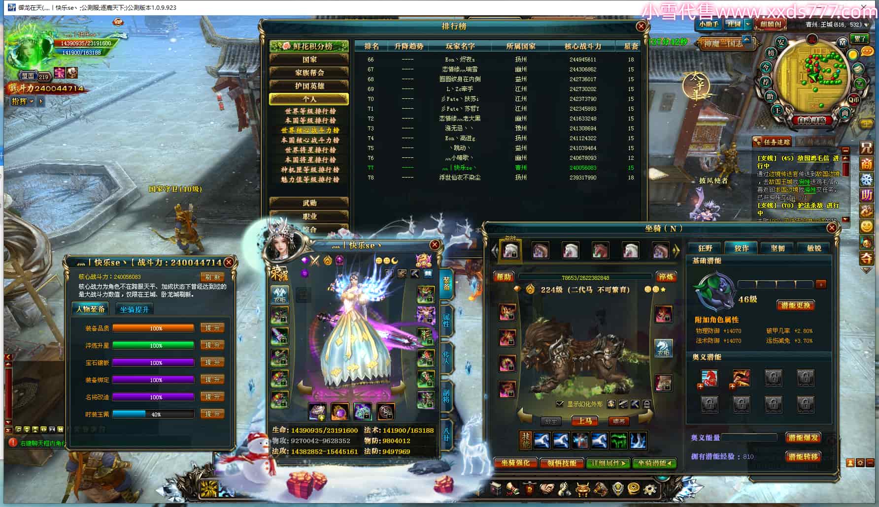 编号Q24804 陌然浅尘兮o灬 潜龙九霄 扬州本国第7名 609W战力 人物普通紫12X 加强紫马9X