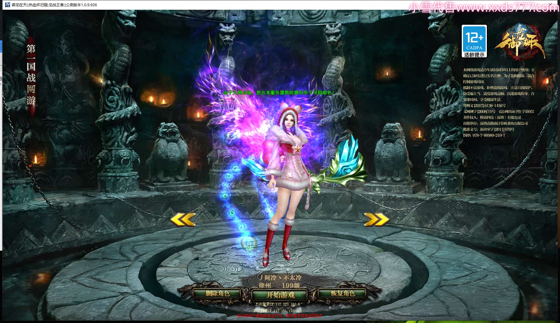 区服类型:真金公测服 龙吟苍穹