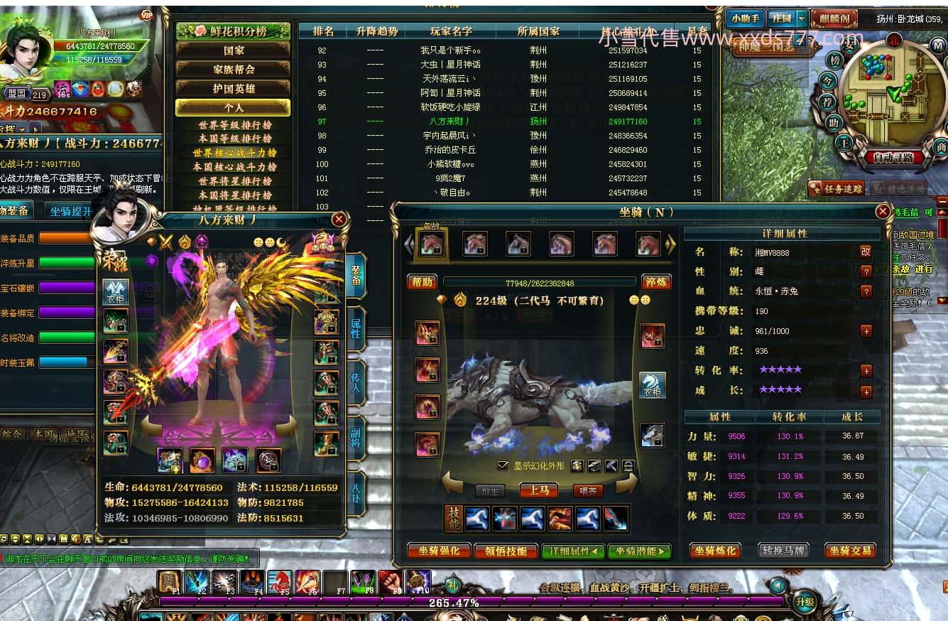 编号T24848 蜜桃小宝贝c丶 龙腾问鼎 幽州 世界排名44名 33206W战力 人物混沌极品橙18X 传人黄金普通橙15X(4件18X) 副将普通橙15X 马黄金精良橙13X 极品紫16披风 人物星魂16级 传人星魂16级 副将星魂12级 马星魂16级 人物铭刻18级 点亮18星 马铭刻15级 点亮14星 人物绿龙印(4件紫龙印) 马黄龙印(1件绿龙印) 六等单双属性完美无暇神圣石头 黄绿紫孔 可以转移百分百安全
