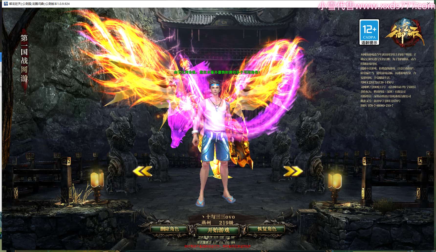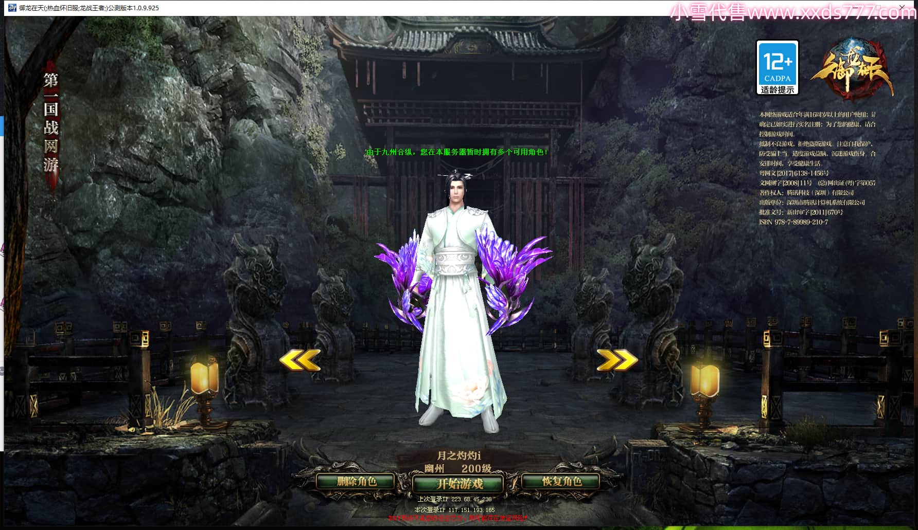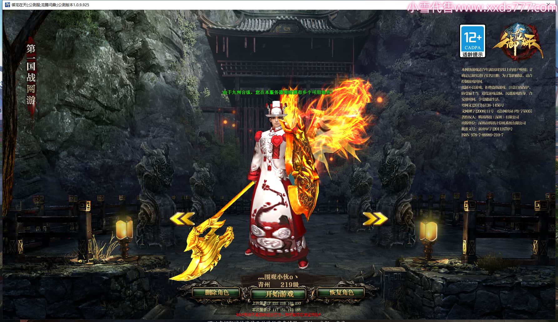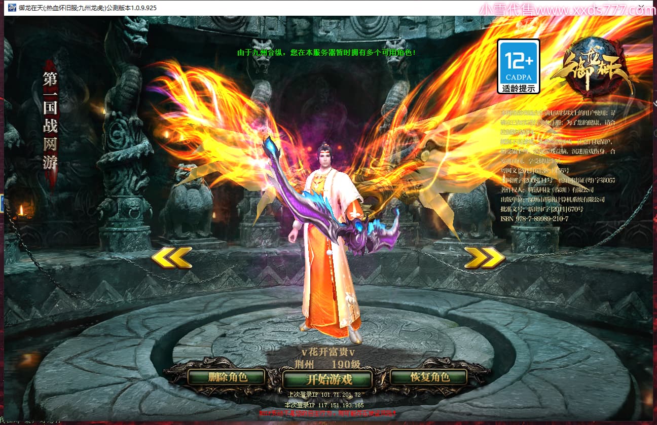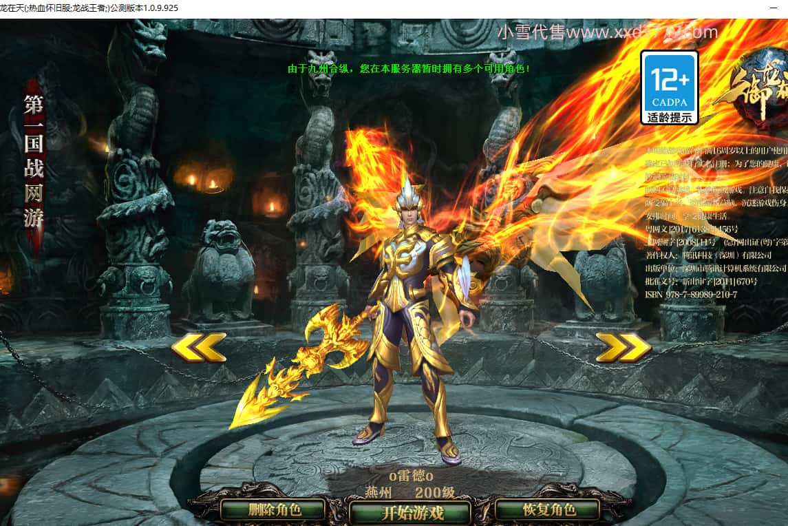 区服类型:绿六原始服 潜龙九霄