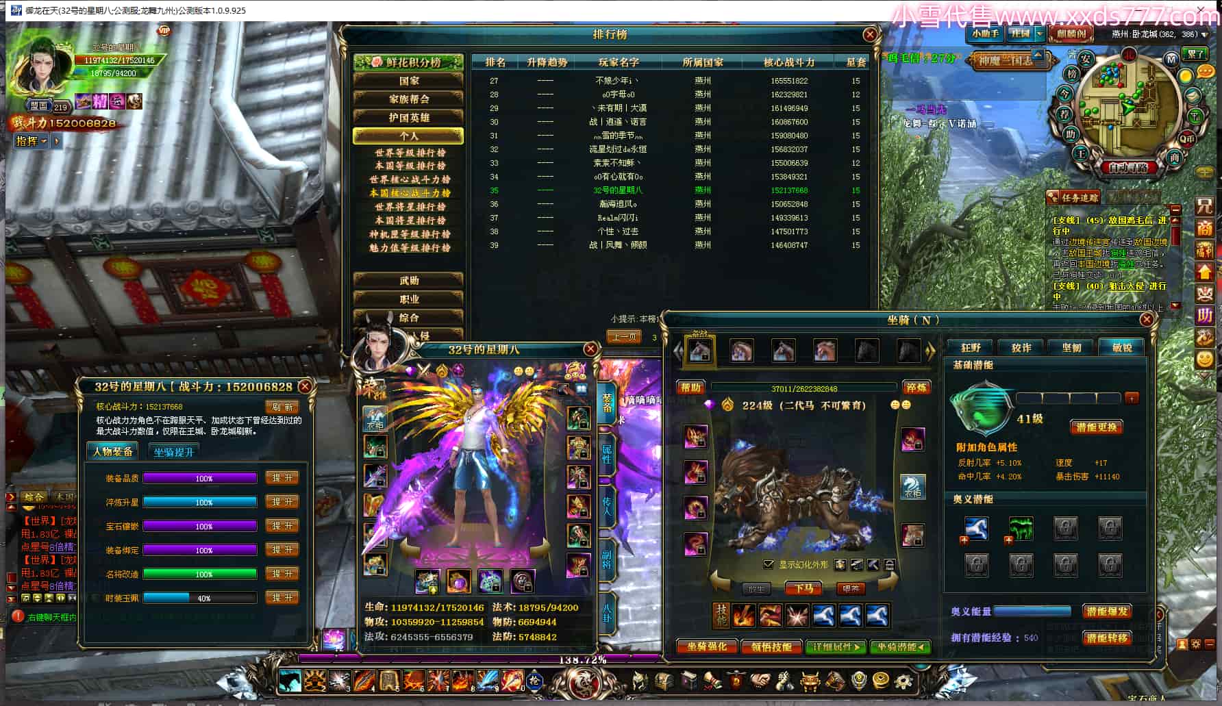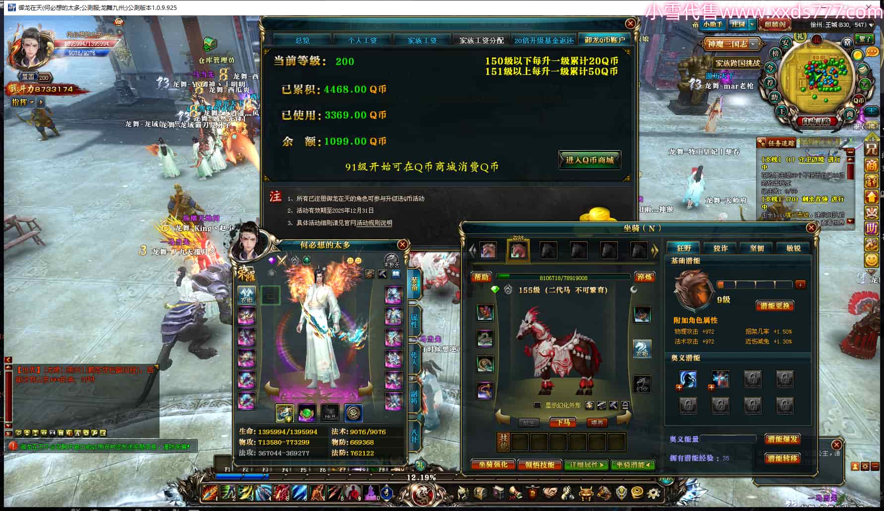 编号W24826 何必想的太多 龙舞九州 徐州 200级 人物12X点星号 号内Q币1099个 坐骑中淬48个
