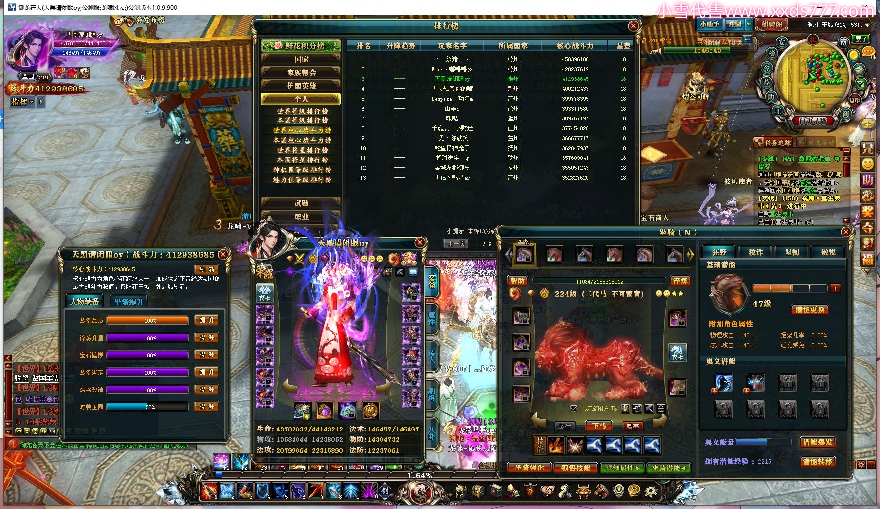 编号X22604 翱翔风云丶 龙啸风云 荆州 193级 人物12X点星号 马9X 人物高淬225个 坐骑中淬108个 坐骑高淬1个