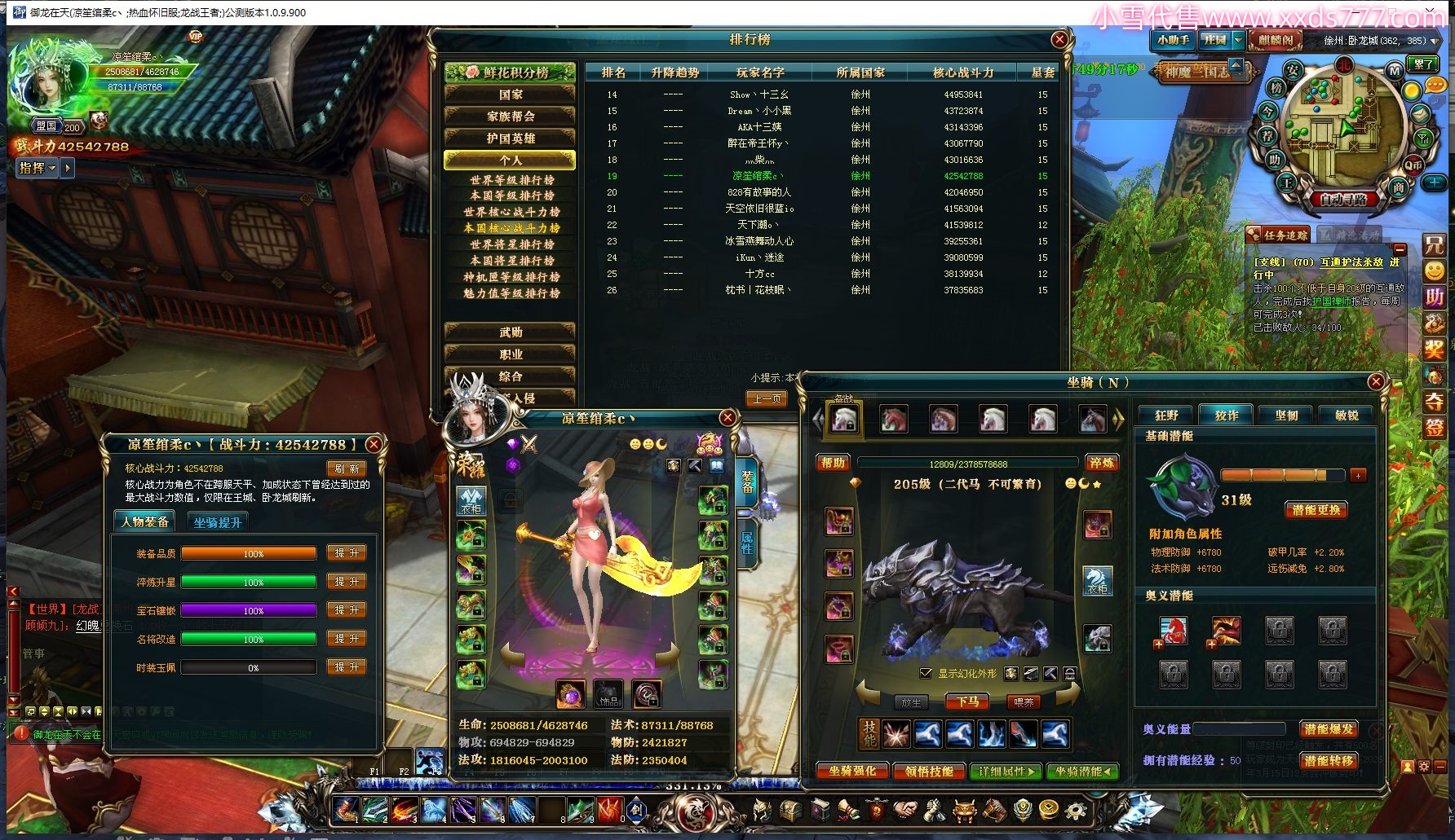 编号L22879 斩妄oi 龙战王者 扬州 本国排名16名 4185W战力 人物黄金加强橙15X(4件混沌) 马普通橙10X 人物绿龙印(1件紫龙印) 马黄龙印 六等单双属性石头 可以转移百分百安全