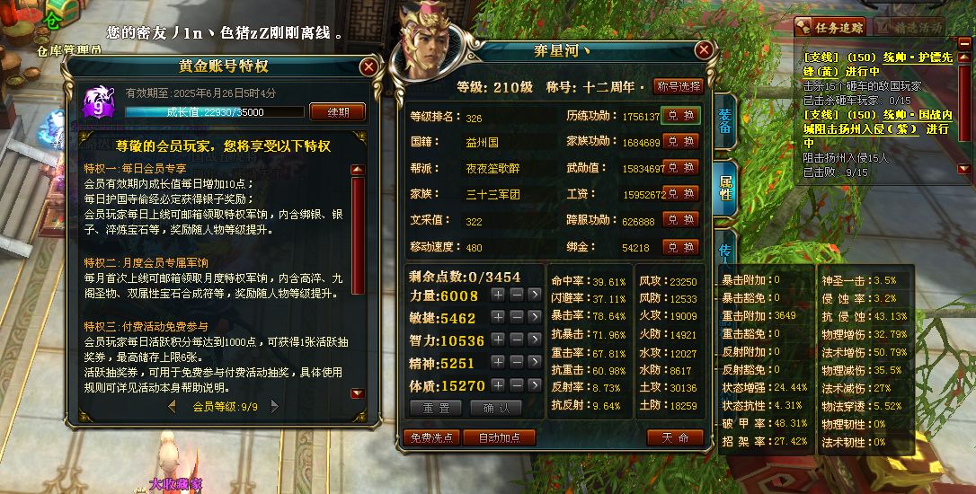 编号X20851 弈星河丶 龙啸风云 益州 本国排名第20名 16941W战力 人物黄金精良橙15X(9件16X7件混沌) 传人普通橙15X 副将加强紫15X 马精良橙13X 极品紫16披风 人物星魂16级 传人16级 副将6级 马星魂16级 人物铭刻16级 差一件护腕点亮16星 马铭刻13级 点亮14星 人物绿龙印(2件绿龙印) 马黄龙印 五六等单双属性神圣完美无瑕石头 黄蓝绿孔