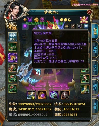 编号Z22897 梦秋水c 逐鹿天下 荆州 世界排名第48名 24316W战力 人物黄金加强橙15X(8件混沌) 传人黄金史诗紫15X 副将极品紫12X 马加强橙13X 极品紫15披风 人物星魂16级 传人16级 副将8级 马星魂16级 人物铭刻6件16级其余15级 点亮16星 马铭刻3件14级其余13级 点亮2件14星其余12星 人物绿龙印(1件紫龙印) 马黄龙印 六等单双属性神圣完美无暇石头 黄绿孔 已开1次永久15星套
