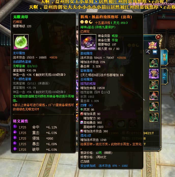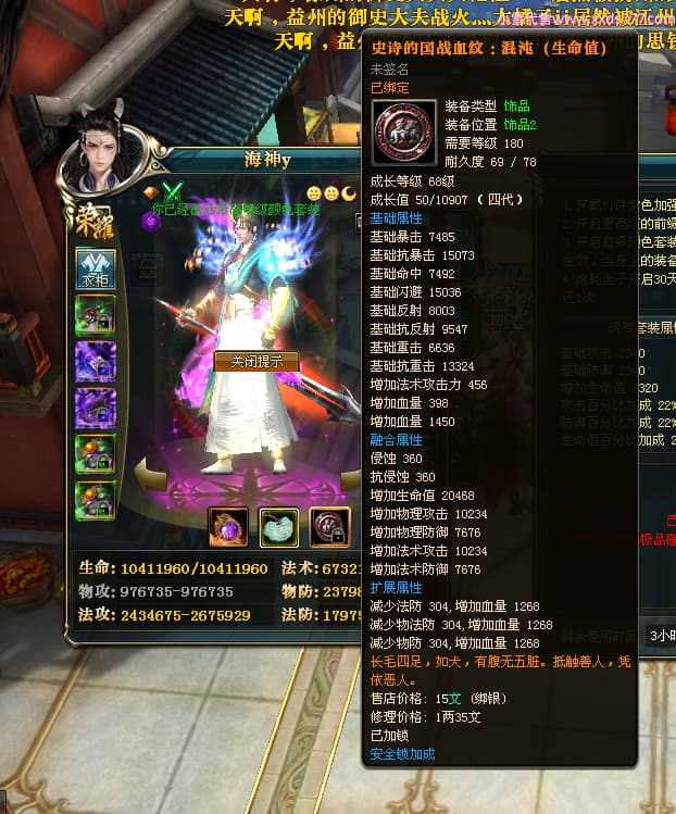 编号L23508 海神y 龙战王者 江州 世界排名39名 6771W战力 人物黄金极品橙15X(2件18X9件混沌) 马黄金极品橙13X 人物绿龙印(3件紫龙印) 马黄龙印 六等单双属性石头 已开启永久15星套 可以转移百分百安全
