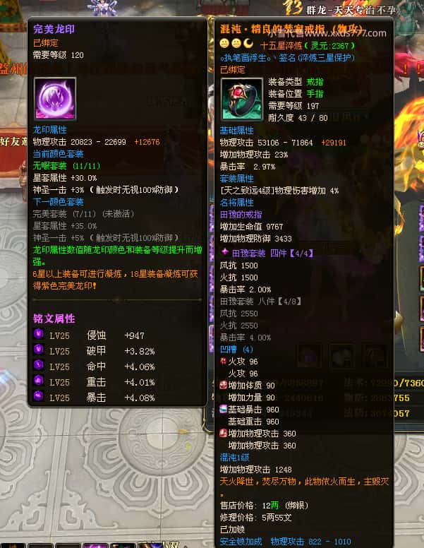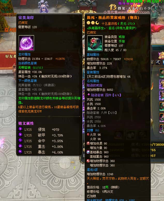 编号Q23532 o逐日追风o丶 群龙纵横 徐州 世界排名32名 5997W战力 人物黄金精良橙15X(衣服18X 9件混沌) 马黄金加强橙12X 人物绿龙印(7件紫龙印) 马一件黄龙印(4件绿龙印) 六等单双属性石头 已开完了永久15星套