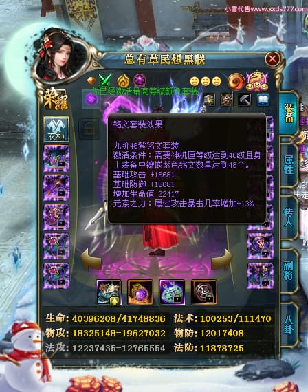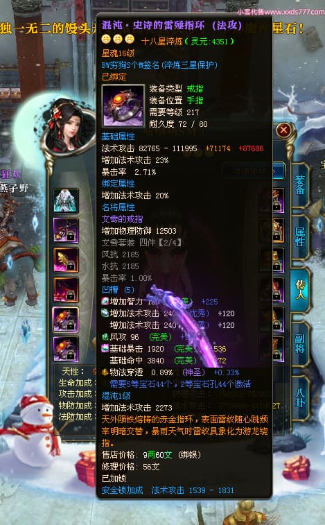 编号Z24160 总有草民想黑朕 逐鹿天下 青州 世界排名11名 37036W战力 人物混沌加强橙18X 传人黄金史诗紫18X(6件混沌) 副将精良紫12X 马混沌精良橙14X(双潜能60级56级) 史诗紫17披风 人物星魂16级 传人星魂14级 副将星魂6级 马星魂16级 人物铭刻18级 人物点亮18星 马铭刻15级 点亮14星 人紫龙印 马4件绿龙印1件黄龙印 六等单双属性神圣石头 绿紫孔